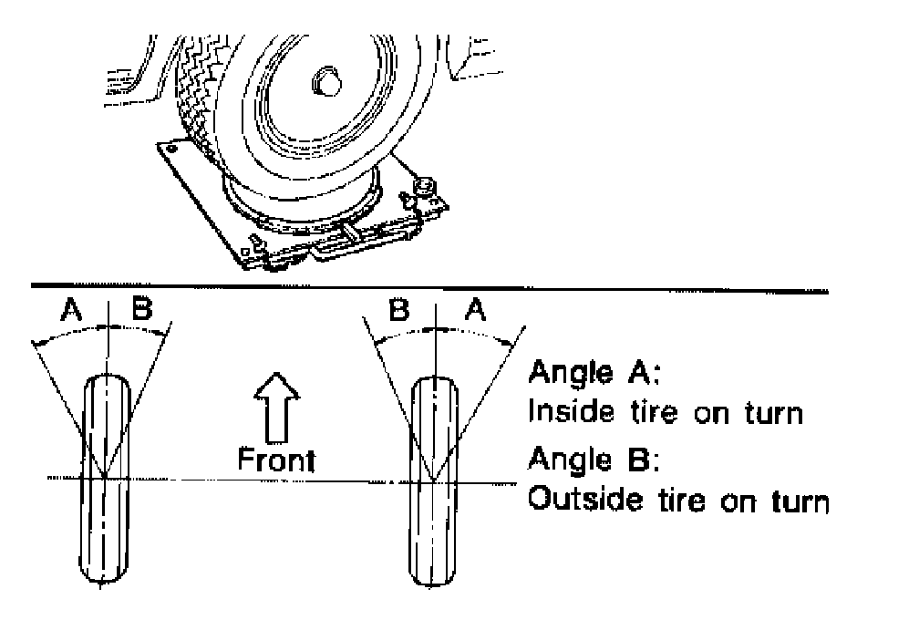 3. Rotate steering wheel all the way right and left; measure turning angle.