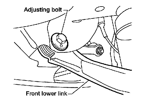 2. If outside of the specified value, adjust the camber using the adjusting bolt in the front lower link.
