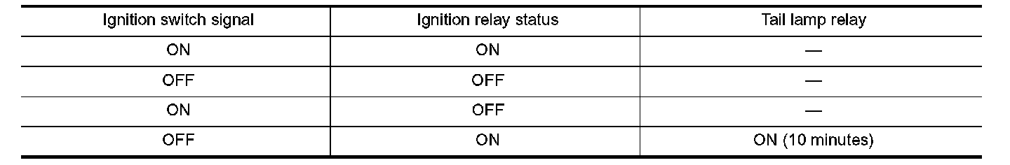 - When the state of the integrated ignition relay does not agree with the state of the ignition switch signal received via CAN communication, the IPDM E/R activates the tail lamp relay.