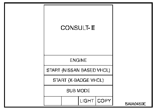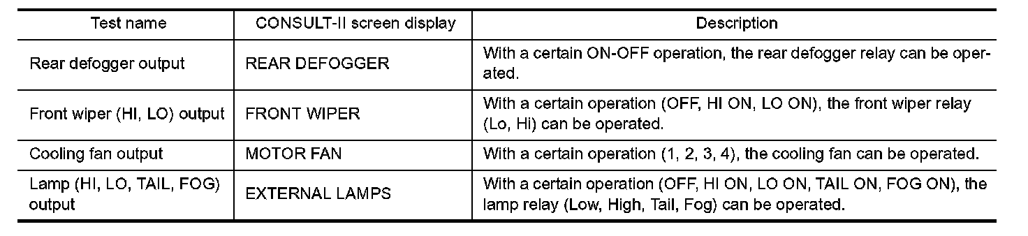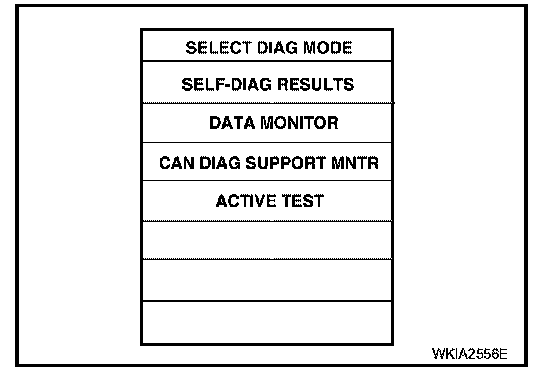 - CONSULT-II can display each diagnostic item using the following diagnostic test modes: self-diagnostic results, data monitor, active test, and CAN diagnostic support monitor through data reception and command transmission via the IPDM E/R communication line.