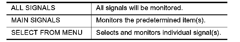 2. Touch "ALL SIGNALS", "MAIN SIGNALS" or "SELECT FROM MENU" on the "DATA MONITOR" screen.