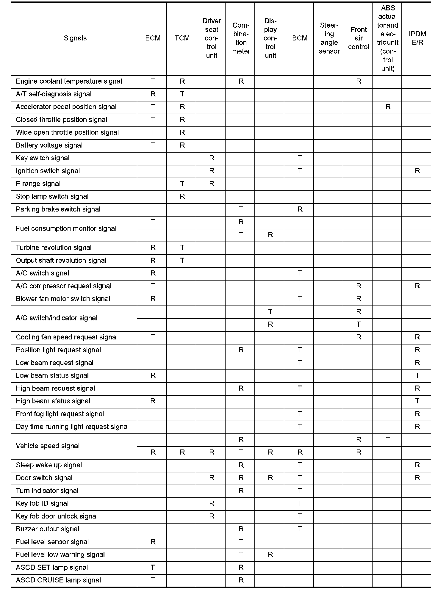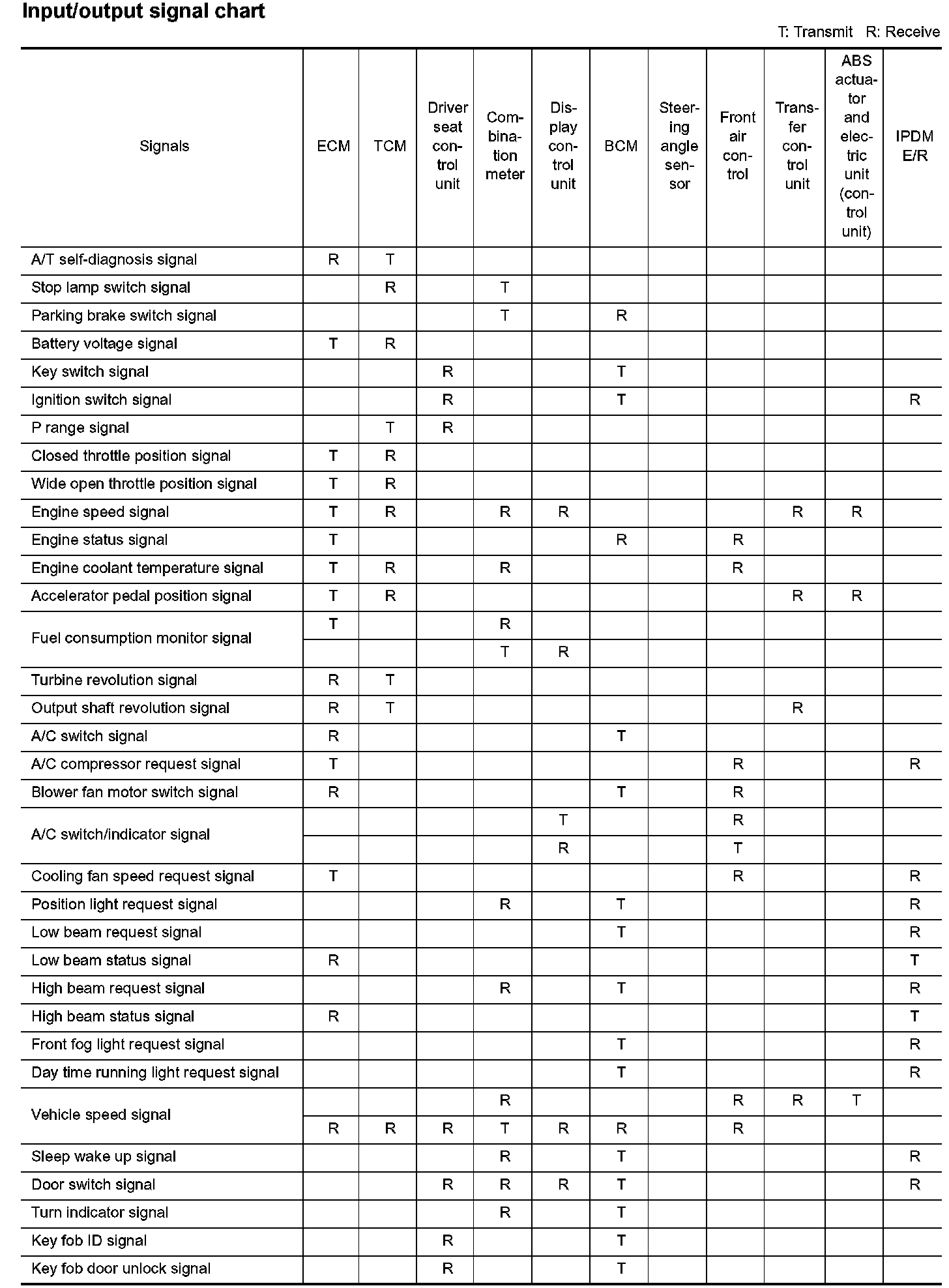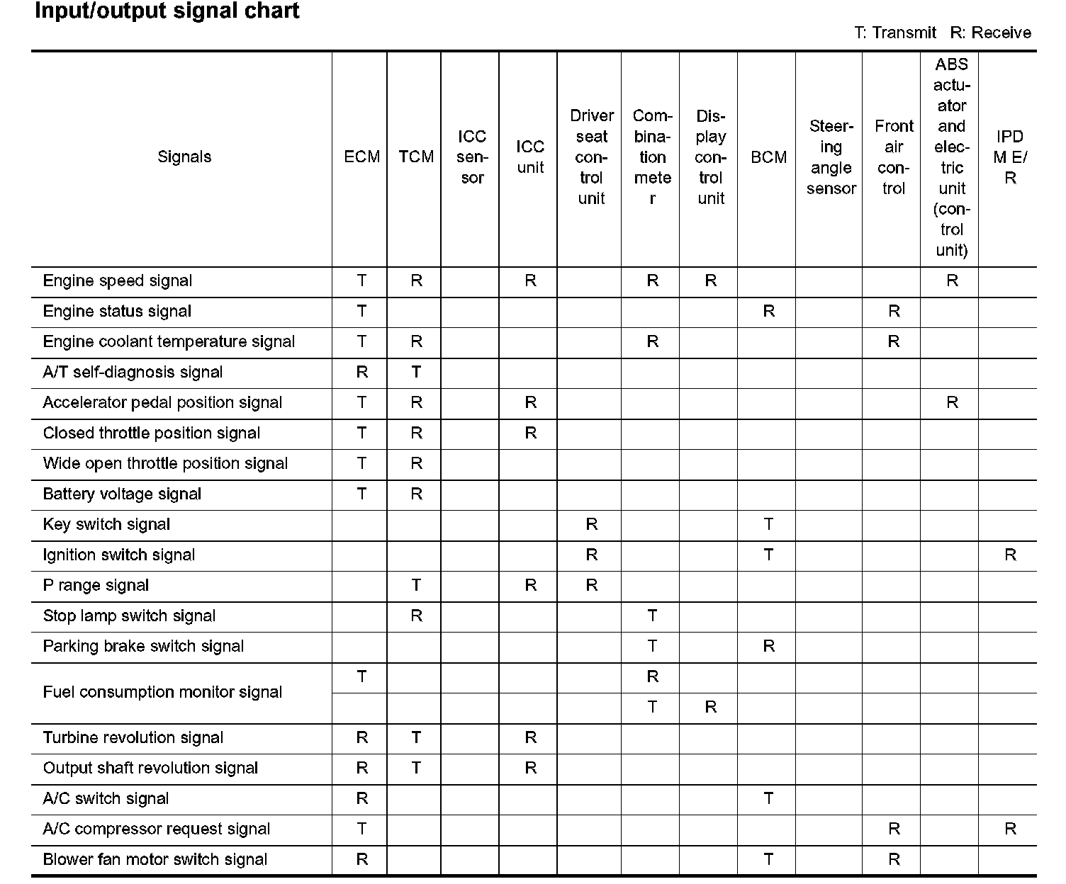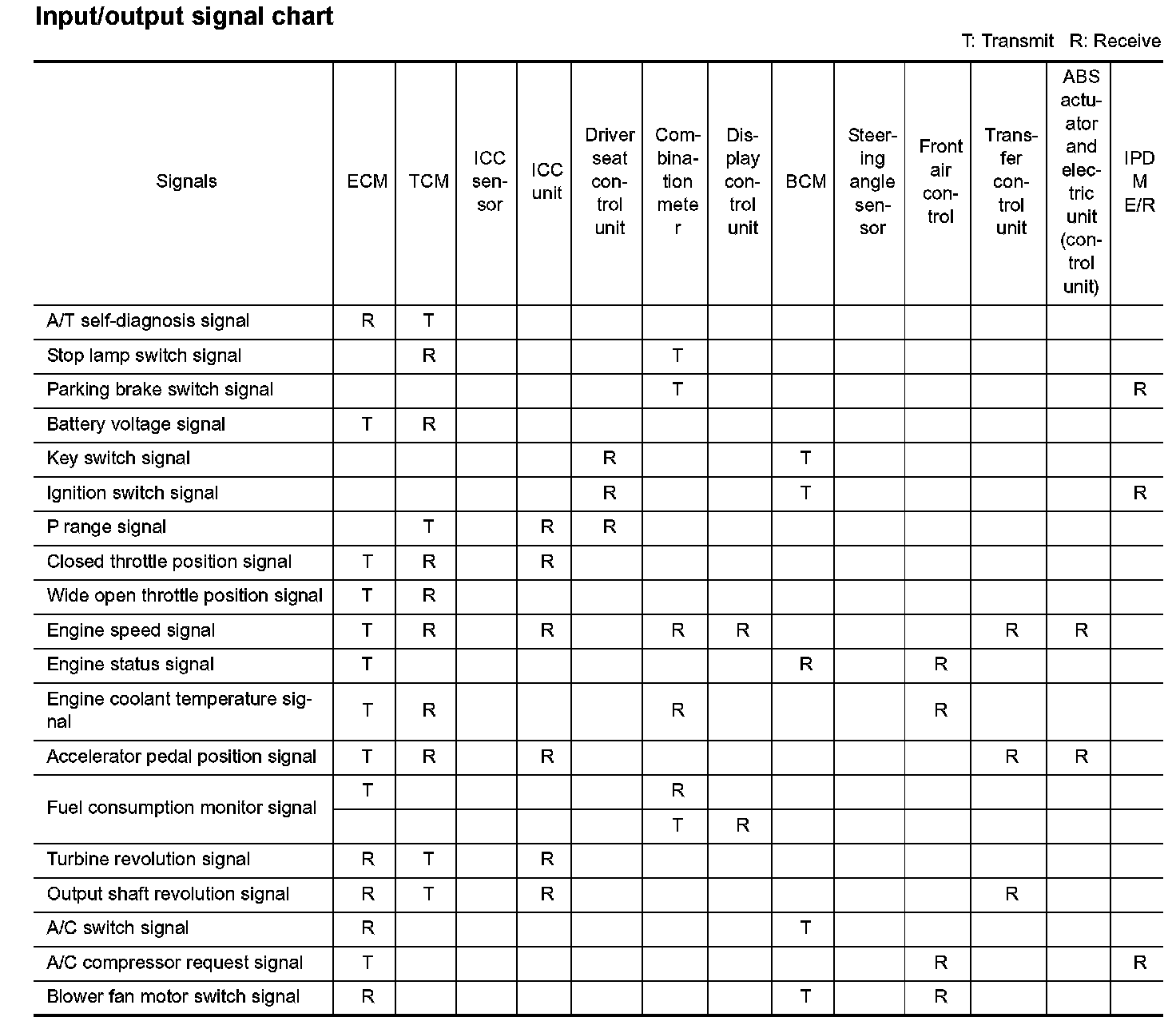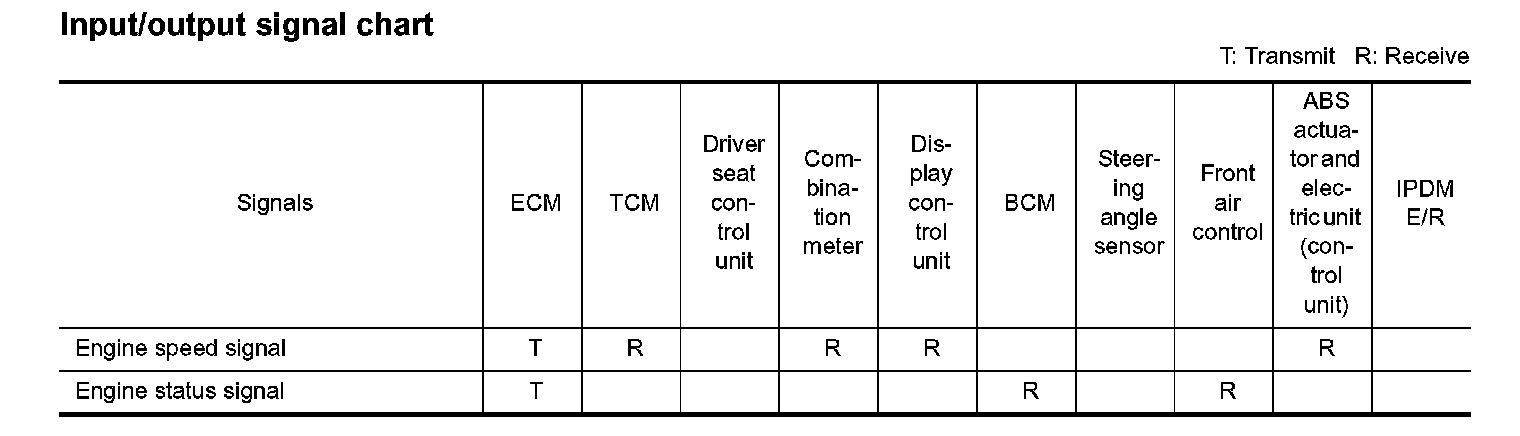 Input/Output Signal Chart Part 1: