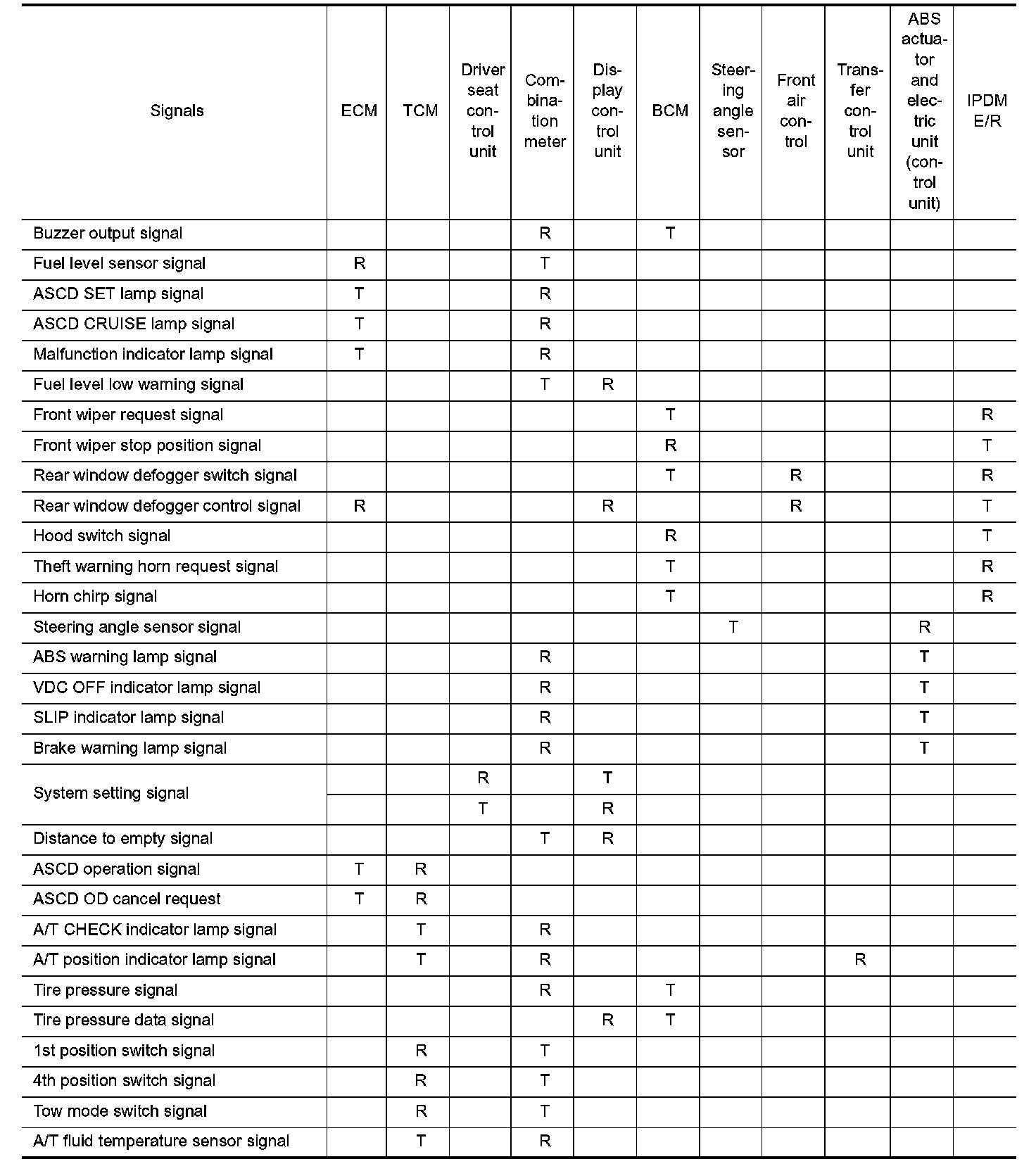 Input/Output Signal Chart Part 3: