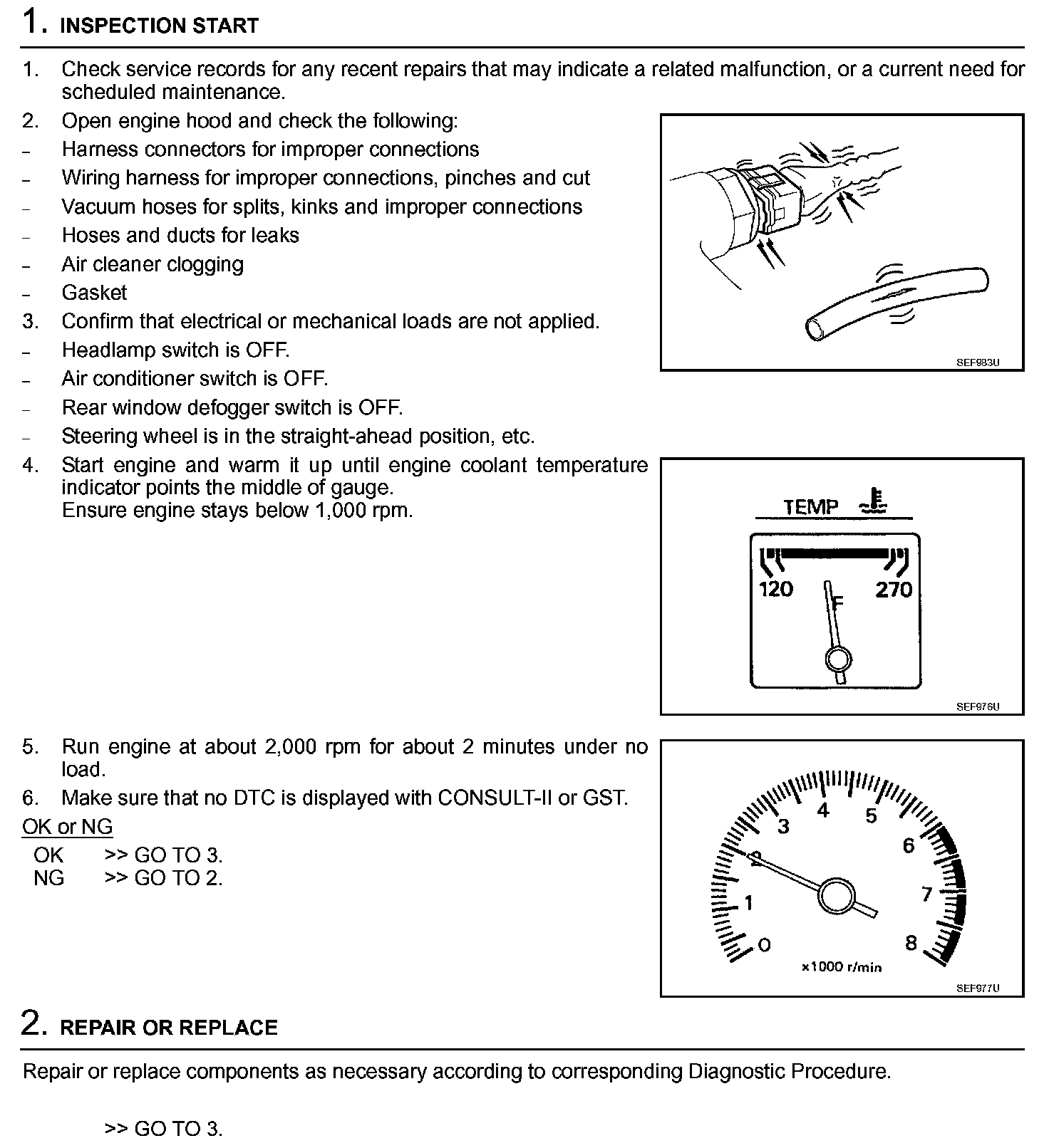2. On air conditioner equipped models, checks should be carried out while the air conditioner is OFF.