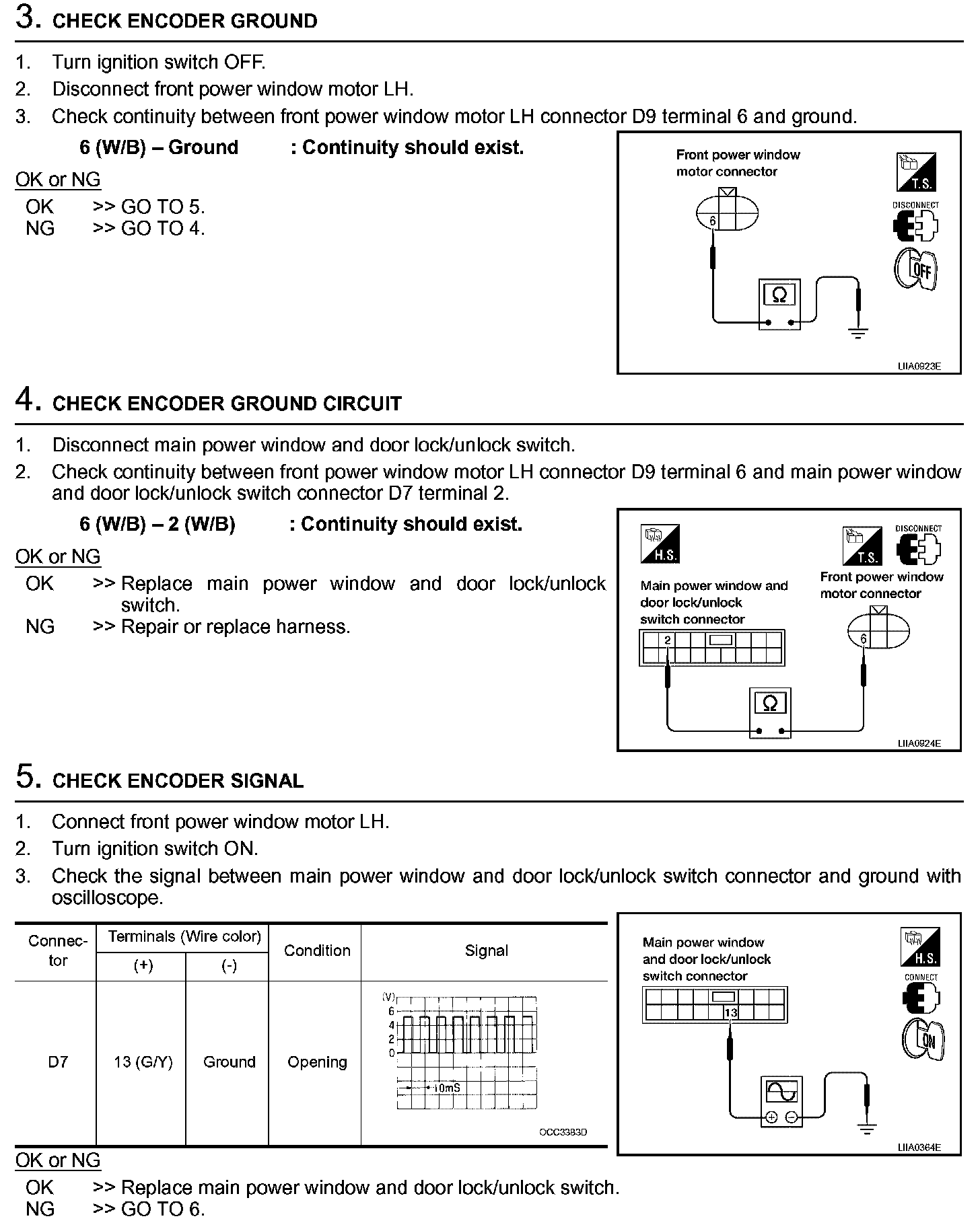 Encoder Circuit Check Front LH (Steps 3 - 5):