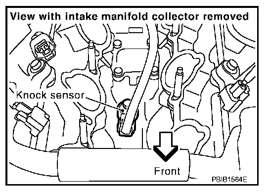The knock sensor is attached to the cylinder block. It senses engine knocking using a piezoelectric element. A knocking vibration from the cylinder block is sensed as vibrational pressure. This pressure is converted into a voltage signal and sent to the ECM.