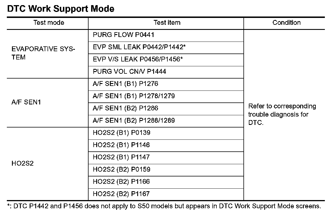 DTC Work Support Mode