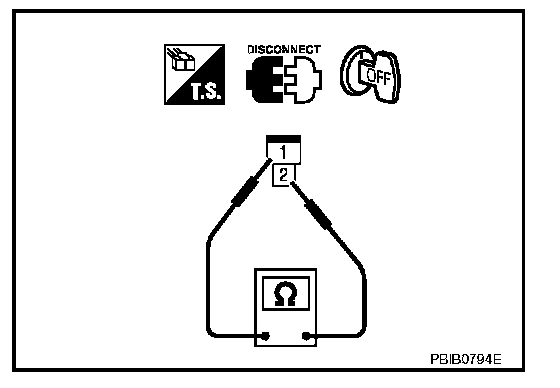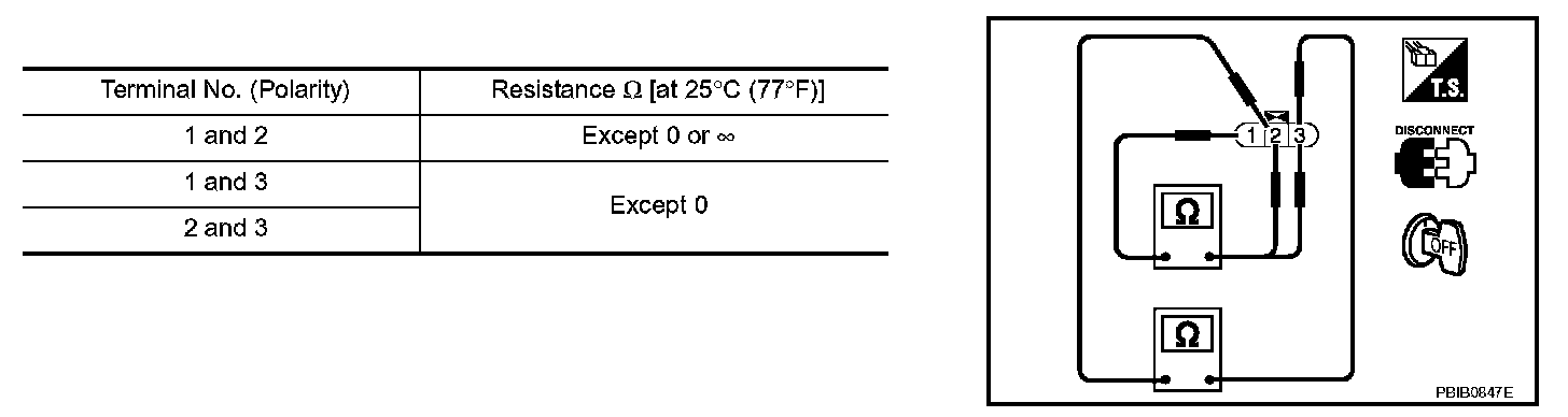 3. Check resistance between ignition coil terminals as given.
