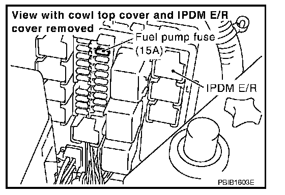 7. Remove fuel pump fuse in IPDM E/R to release fuel pressure.