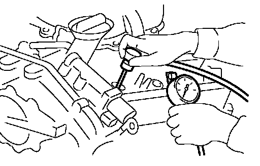 8. Turn ignition switch to "START" for cranking. When the gauge pointer stabilizes, read the compression pressure and the engine rpm. Perform these steps to check each cylinder.