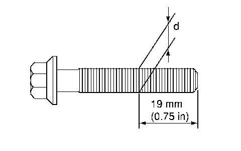 CONNECTING ROD BOLT OUTER DIAMETER^ Measure the outer diameter "d" at position shown in the figure.