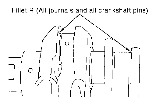 CAUTION: In grinding crankshaft main journal to use undersize bearings, keep the fillet R [1.5 -1.7 mm (0.059 - 0.067 inch)].