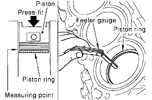 ^ If the measured value exceeds the limit, replace piston ring, and measure again. If it still exceeds the limit, re-bore cylinder and use oversize piston and piston rings.