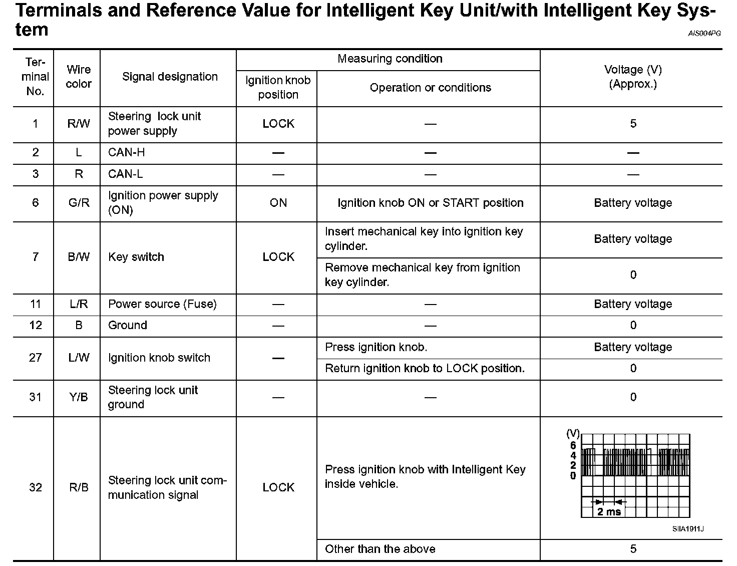 Terminals And Reference Value For Intelligent Key Unit/with Intelligent Key System: