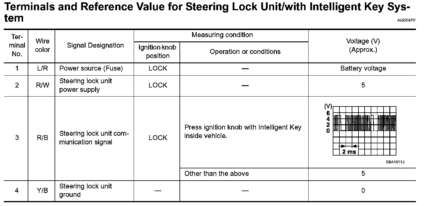 Terminals And Reference Value For Steering Lock Unit/with Intelligent Key System: