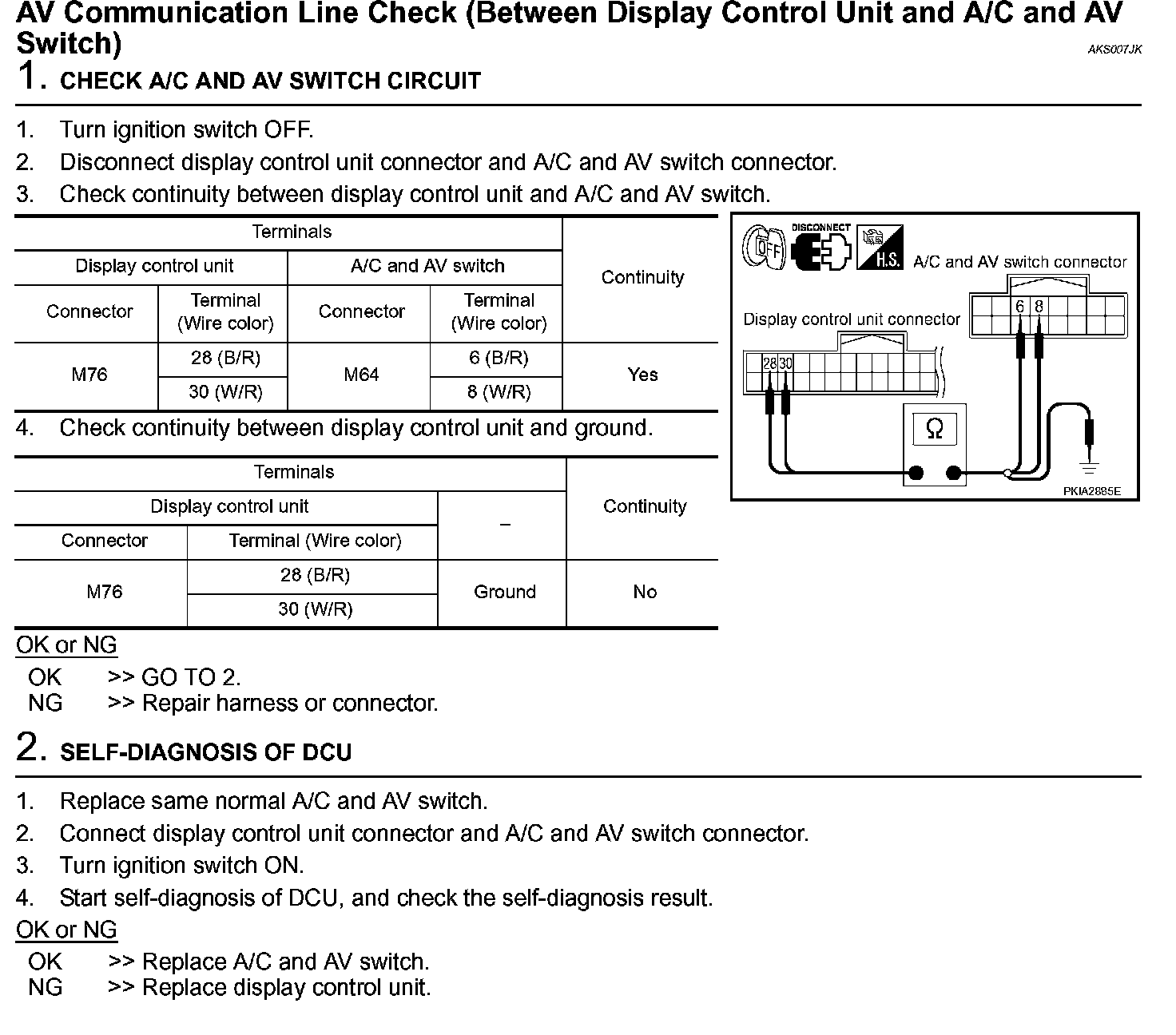 AV Communication Line Check (Between Display Control Unit And A/C And AV Switch: