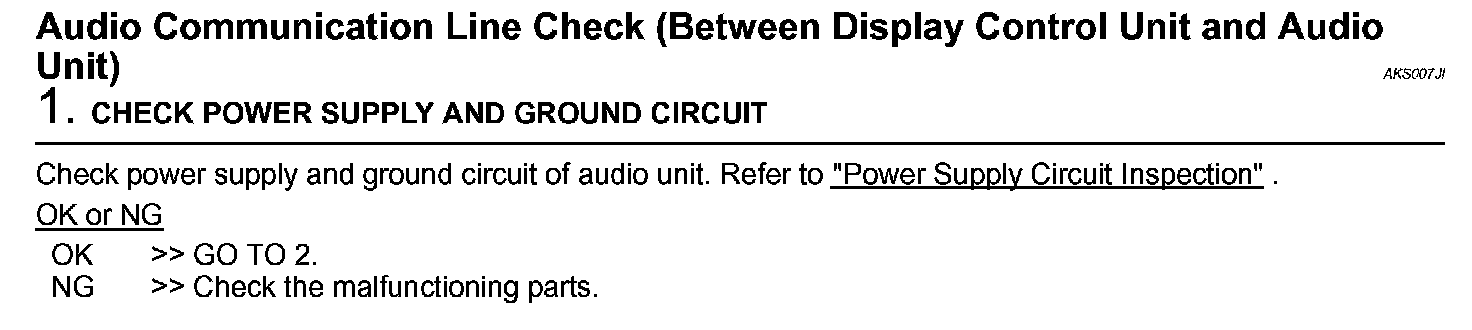 Audio Communication Line Check (Between Display Control Unit and Audio Unit)