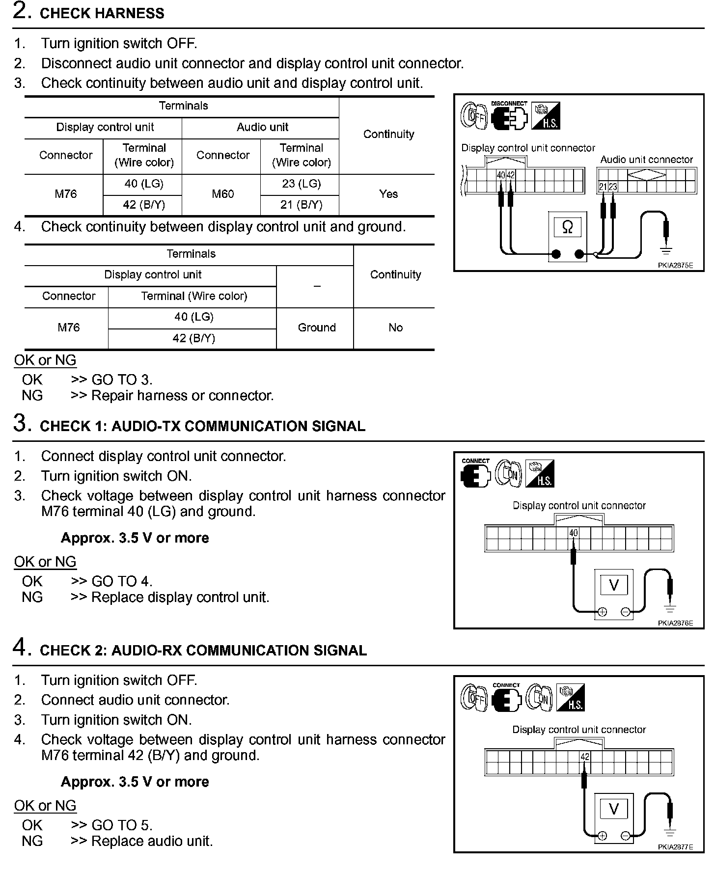Audio Communication Line Check (Between Display Control Unit And Audio Unit) (Steps 2 - 4):