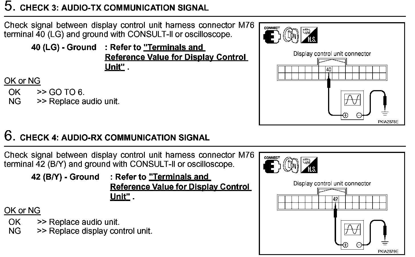 Audio Communication Line Check (Between Display Control Unit And Audio Unit) (Steps 5 - 6):