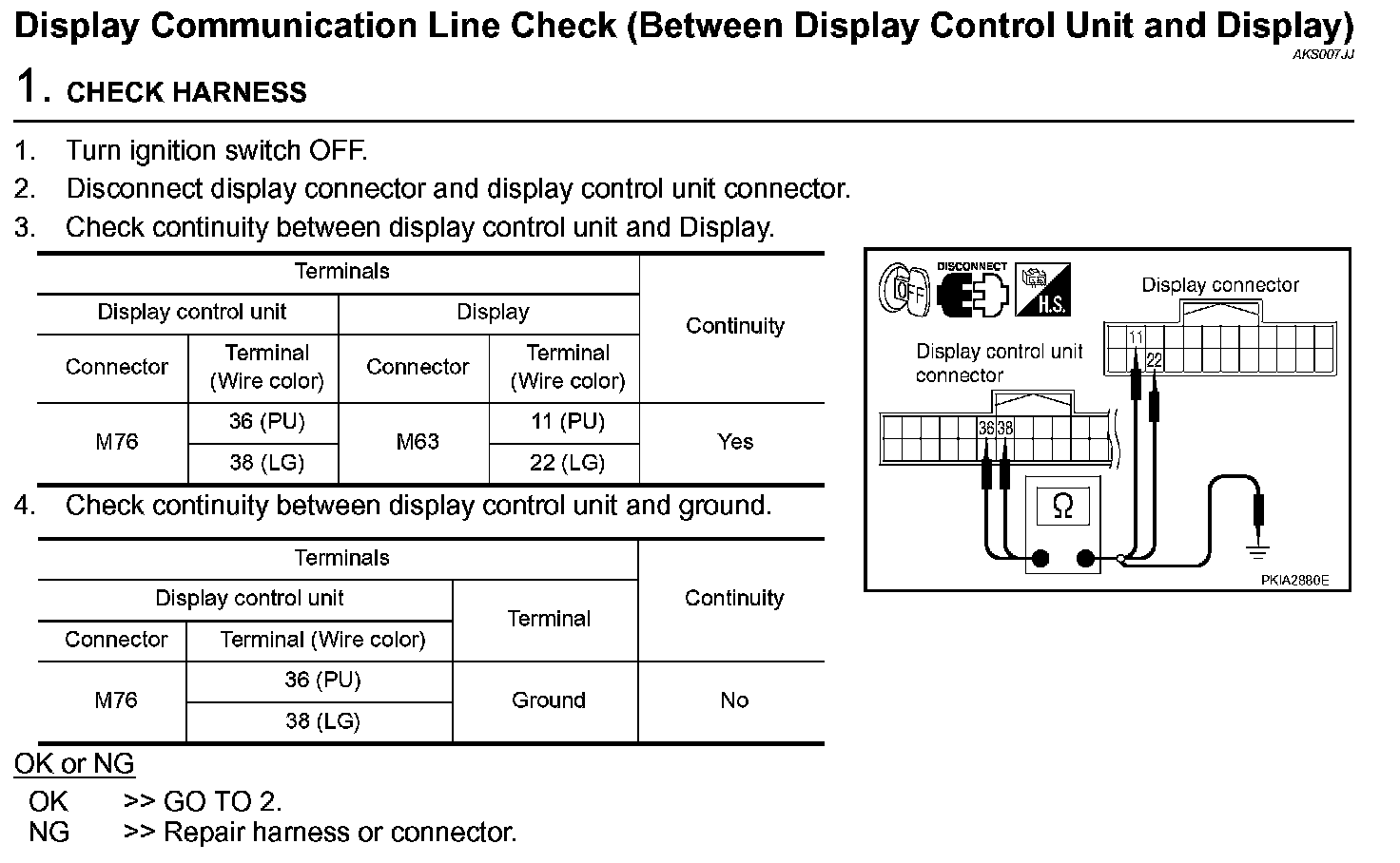 Display Communication Line Check (Between Display Control Unit And Display) (Step 1):