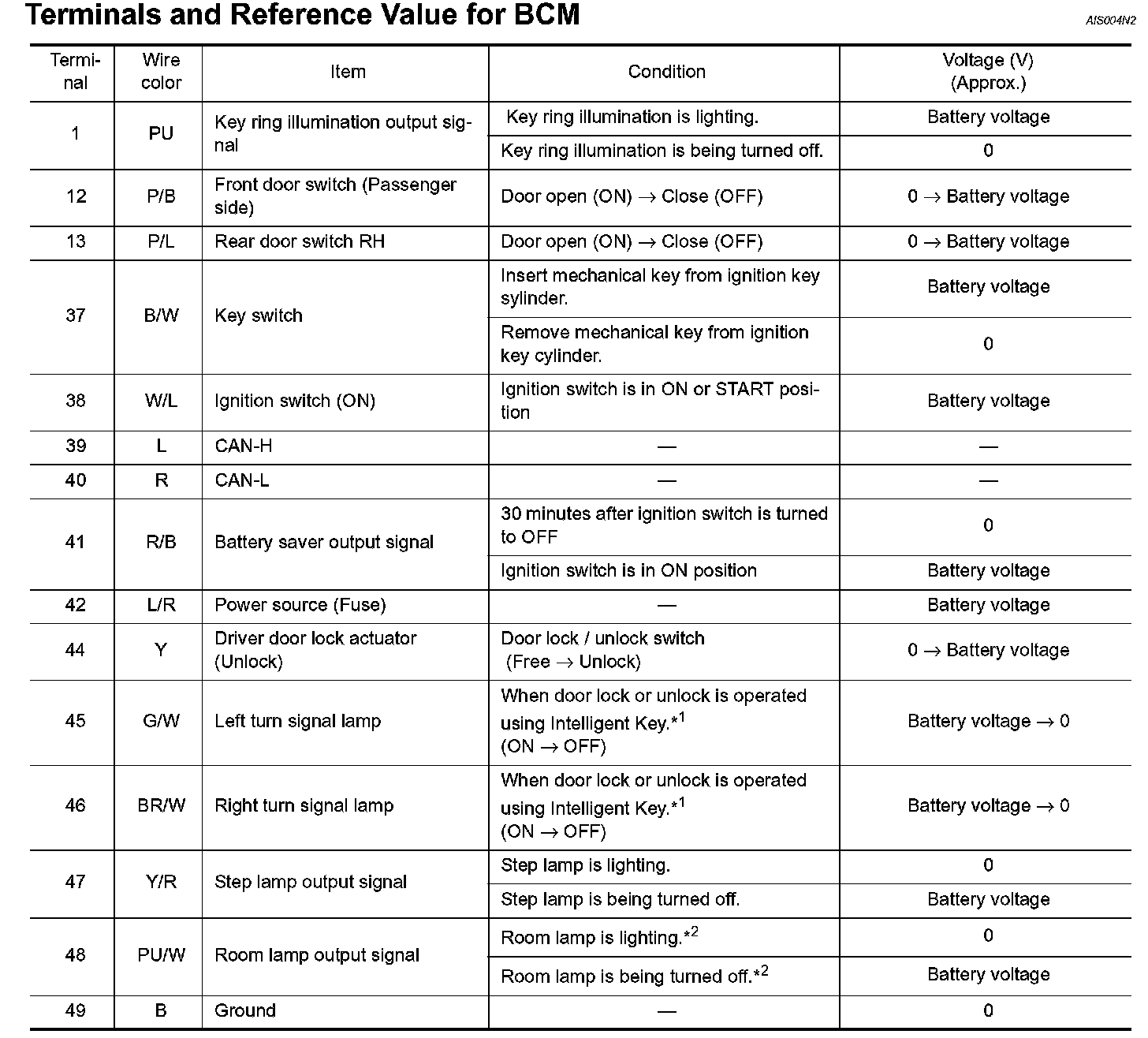 Terminals And Reference Value For BCM Part 1: