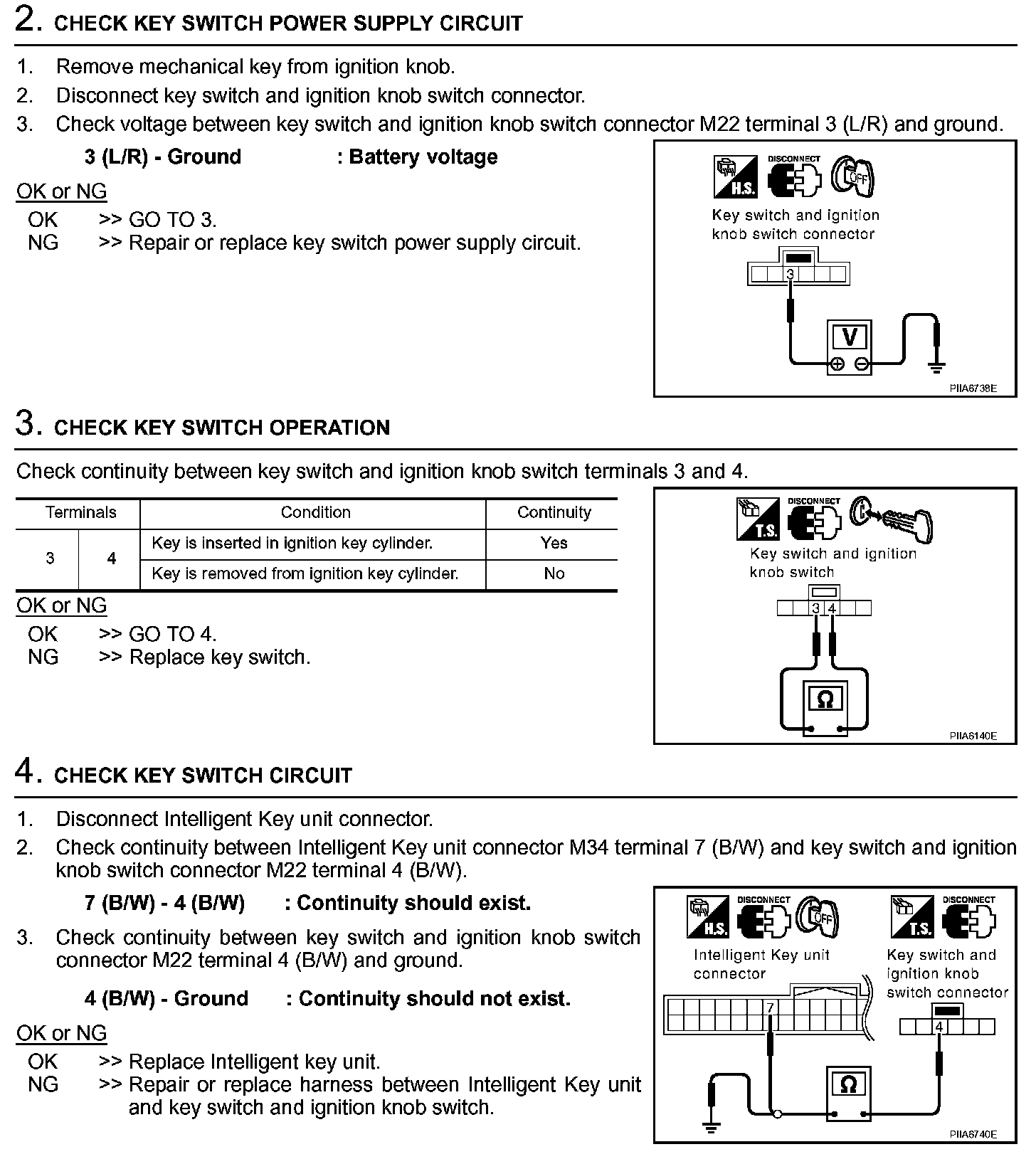 Check Key Switch (Intelligent Key Unit Input) (Steps 2 - 4):