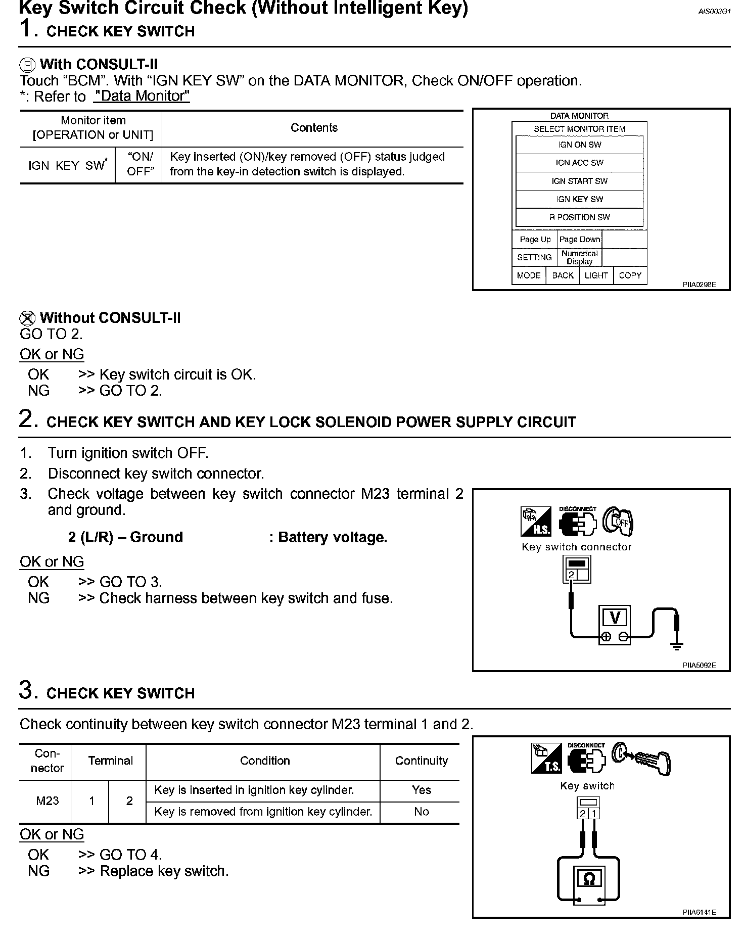 Key Switch Circuit Check (Without Intelligent Key) (Steps 1 - 3):
