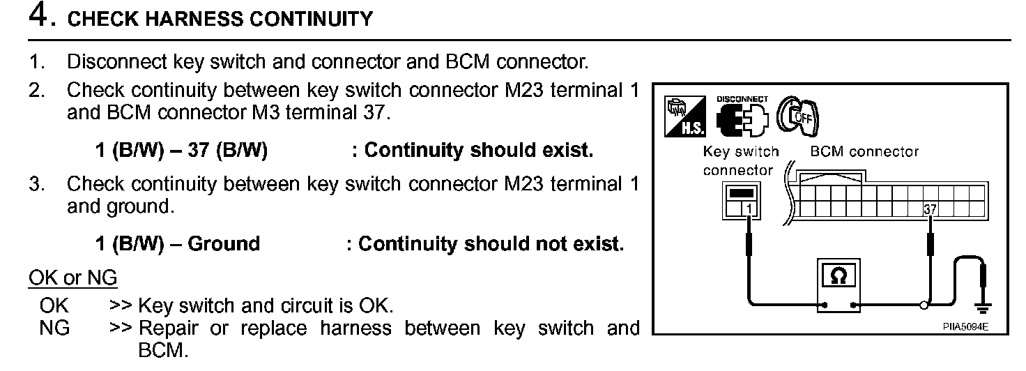 Key Switch Circuit Check (Without Intelligent Key) (Step 4):