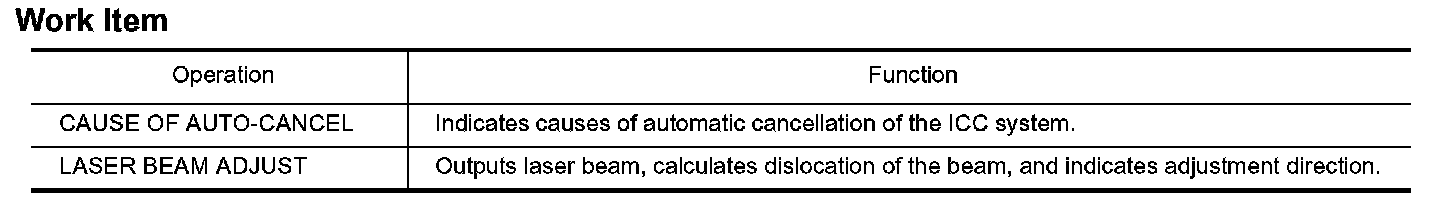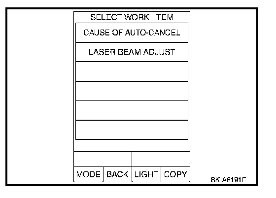 2. Touch "CAUSE OF AUTO-CANCEL" on the "SELECT WORK ITEM" screen.