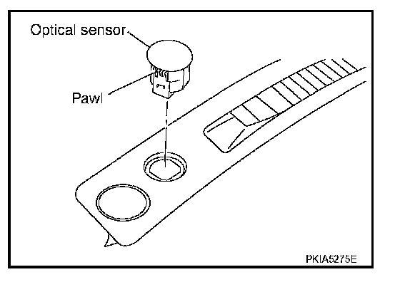 1. Insert a screwdriver or similar tool and remove front defroster grill (LH). Refer to "(V) Front Defroster Grille (RH/LH)" in "IP" section.