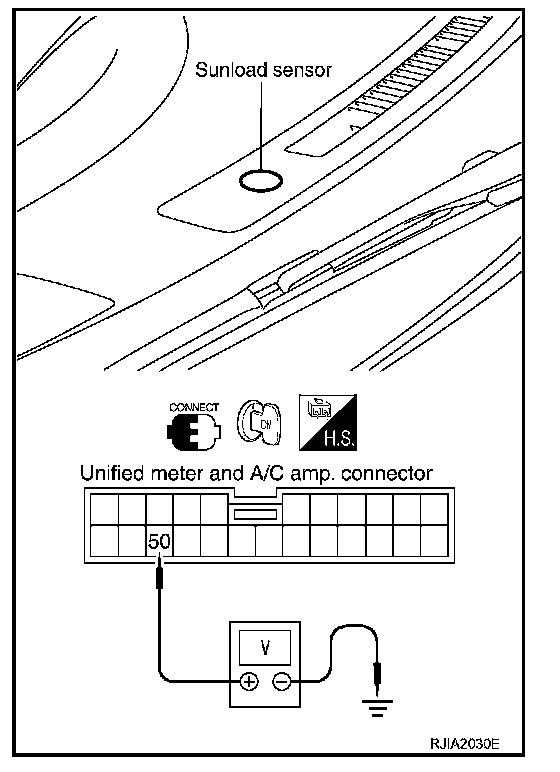 - When checking sunload sensor, select a place where sun shines directly on it.