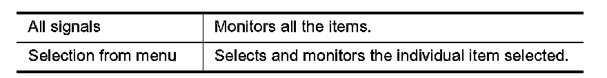 4. When "SELECTION FROM MENU" is selected, touch items to be monitored. When "ALL SIGNALS" is selected, all the items will be monitored.