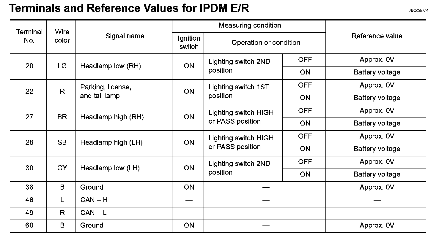 Terminals And Reference Values For IPDM E/R: