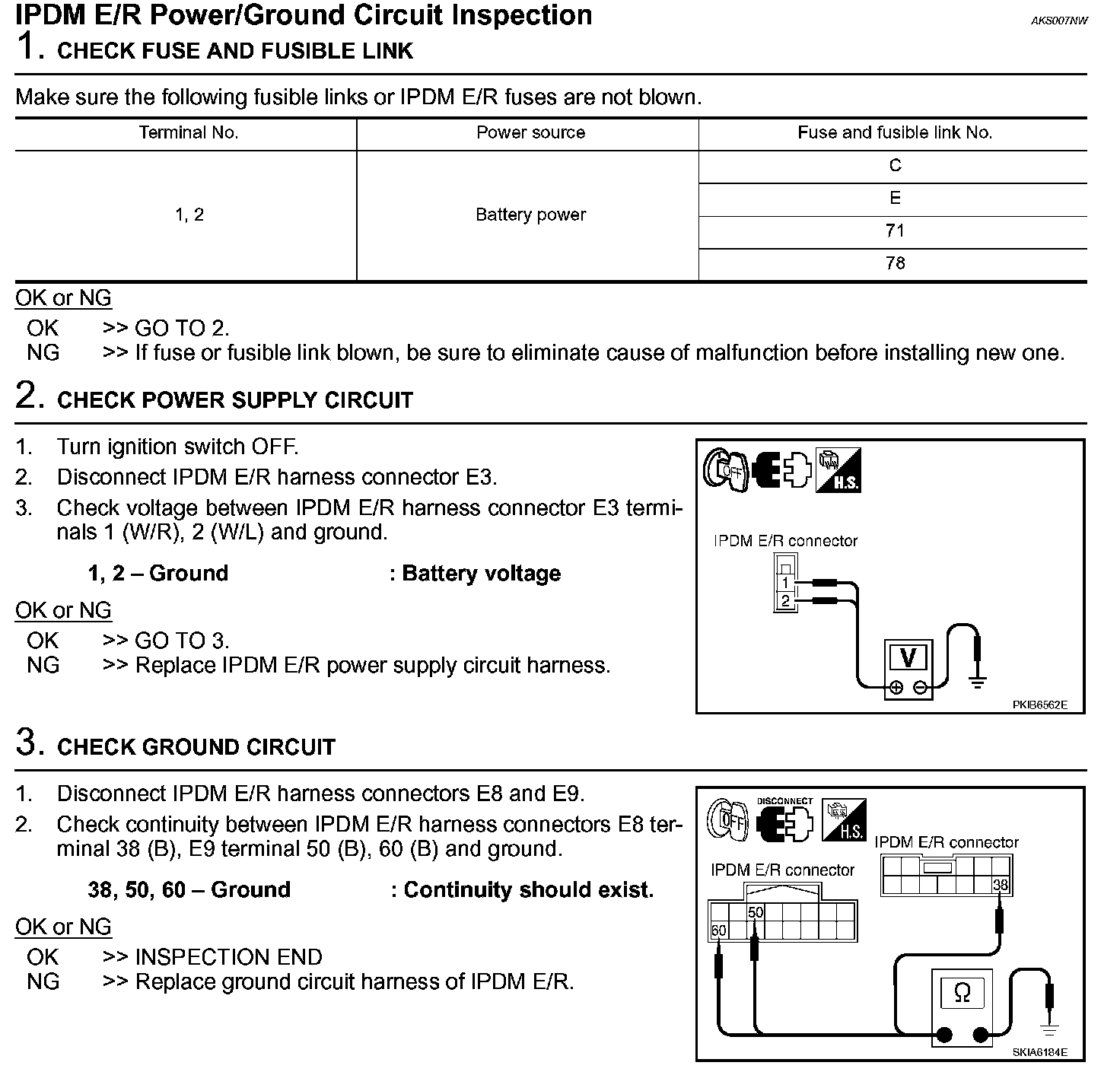 IPDM E/R Power/Ground Circuit Inspection: