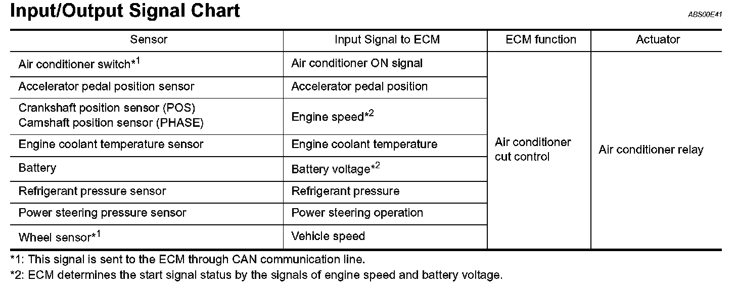 AIR CONDITIONING CUT CONTROLInput/Output Signal Chart