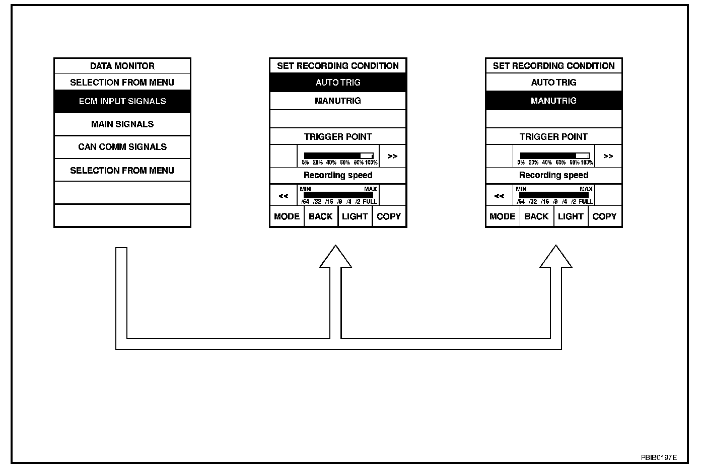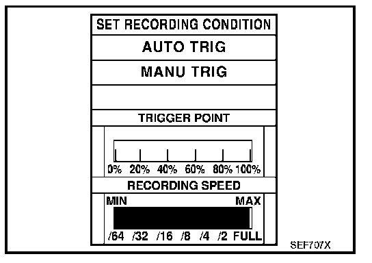 The recording time after the malfunction detection and the recording speed can be changed by "TRIGGER POINT" and "Recording Speed". Refer to CONSULT-II OPERATION MANUAL.