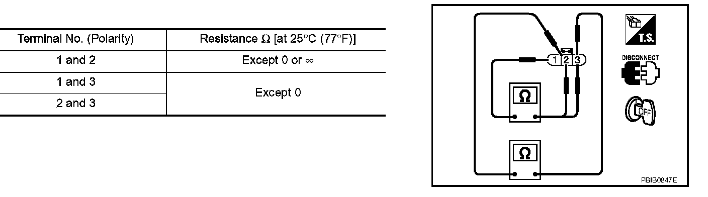 3. Check resistance between ignition coil terminals as given.