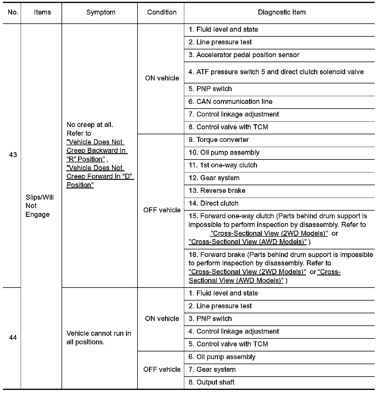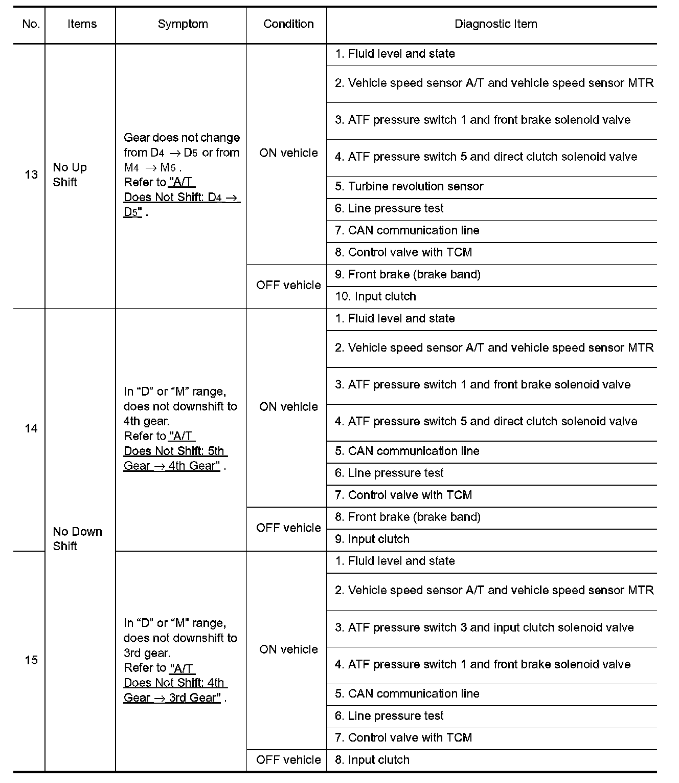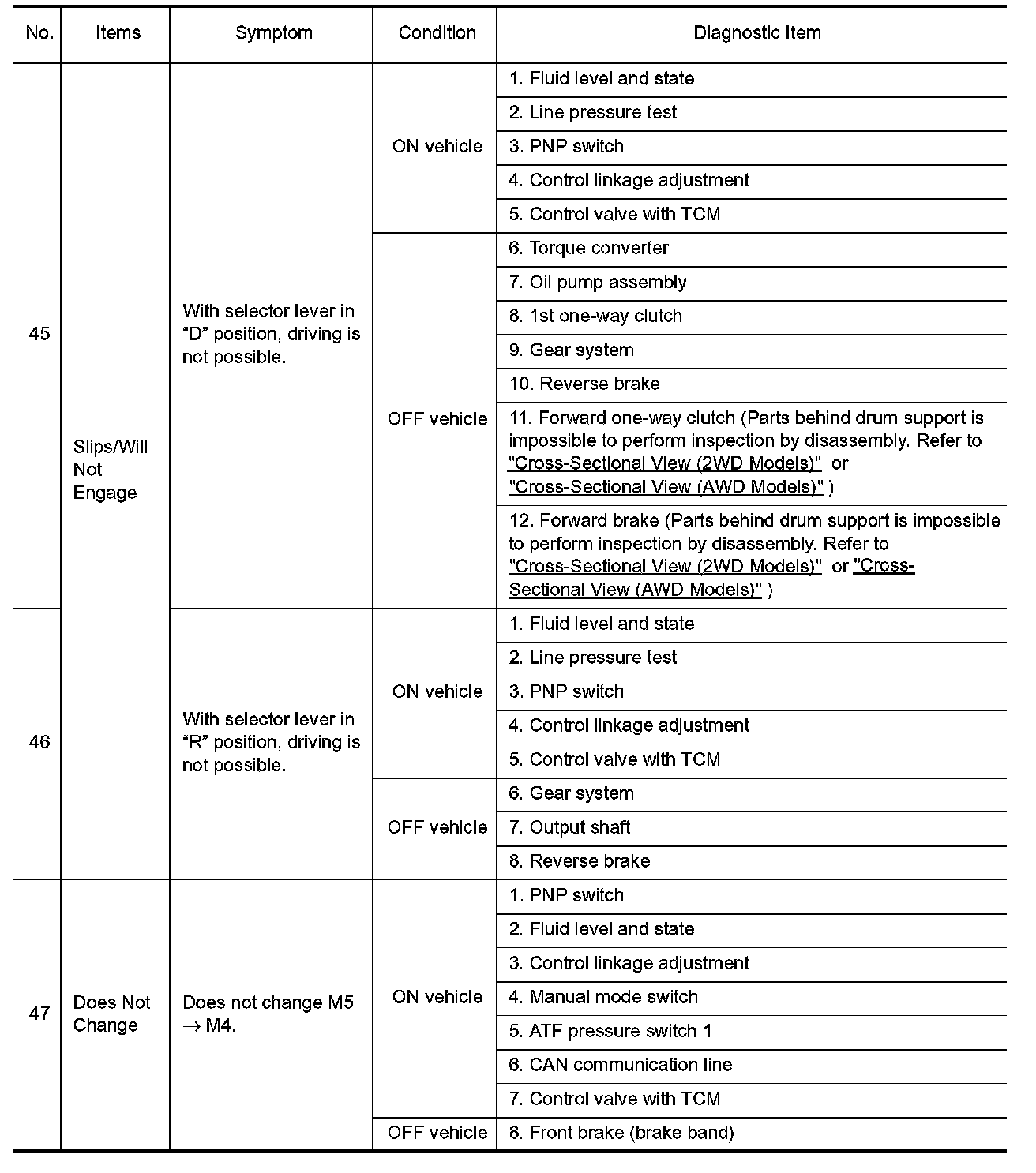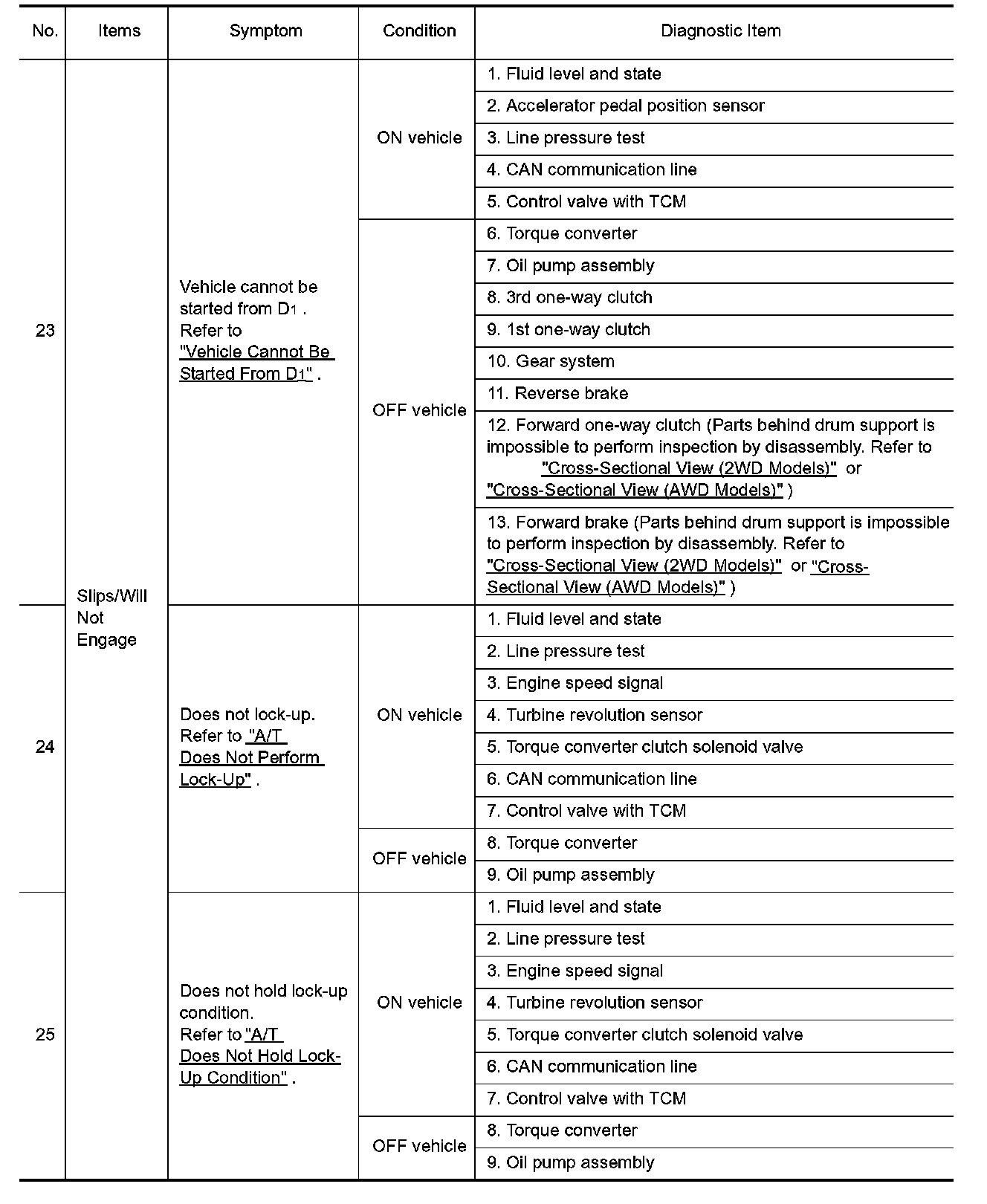 ^ Overhaul and check inside the A/T only if A/T fluid condition is NG. Refer to "Fluid Condition Check".
