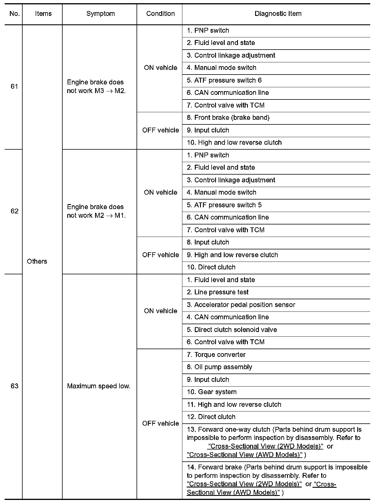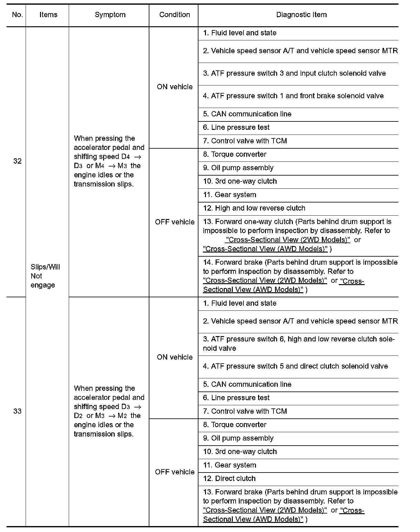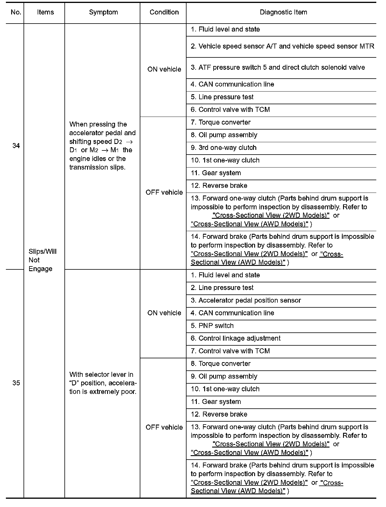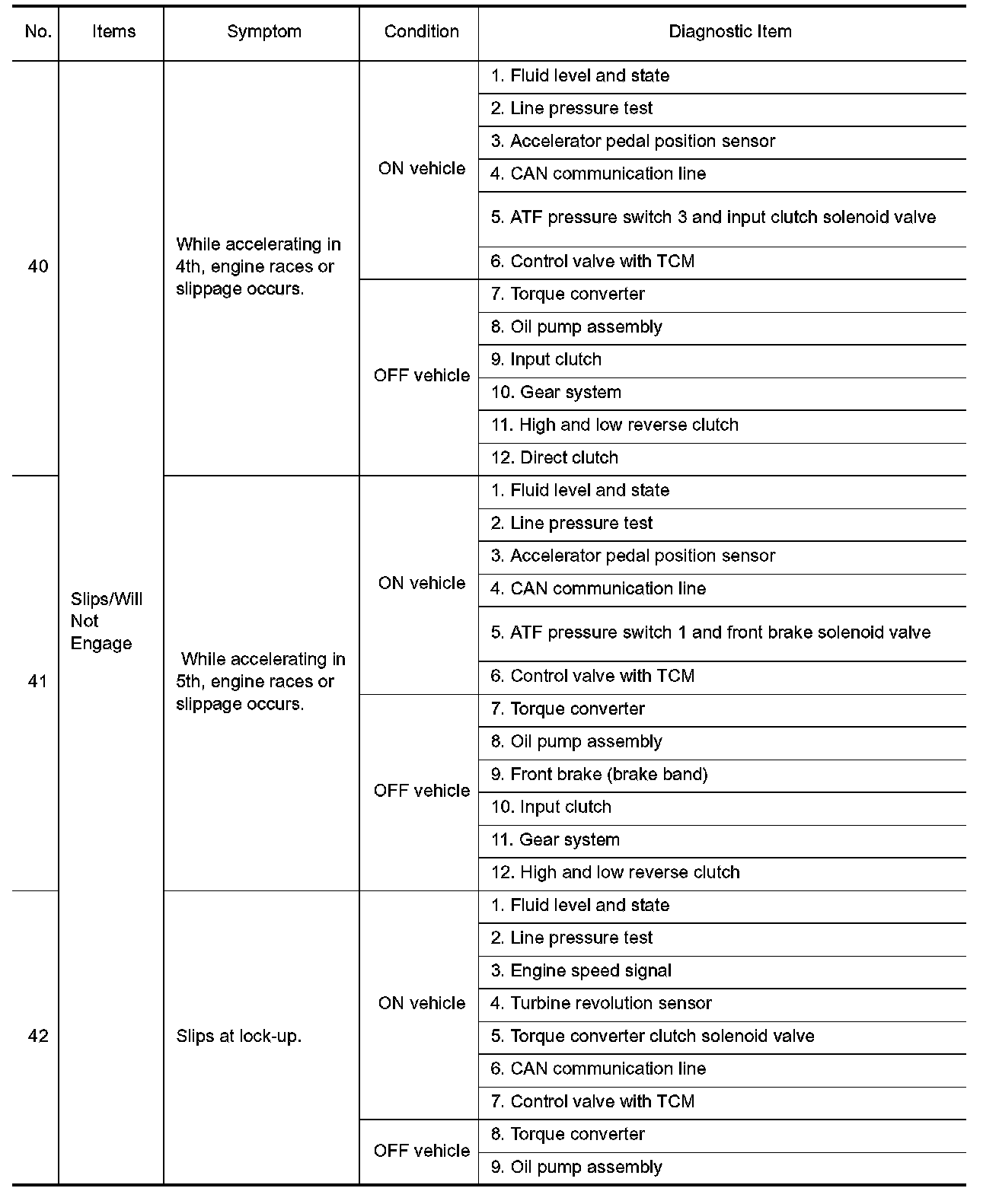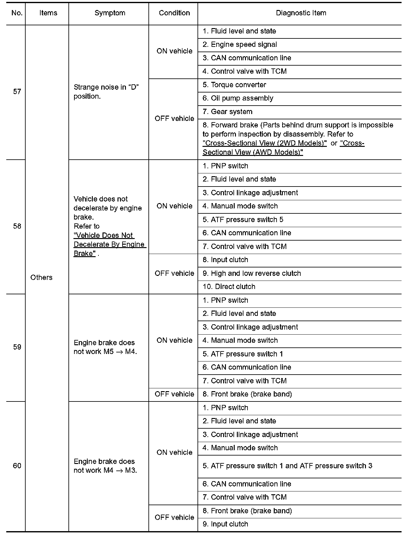 ^ Overhaul and check inside the A/T only if A/T fluid condition is NG. Refer to "Fluid Condition Check".