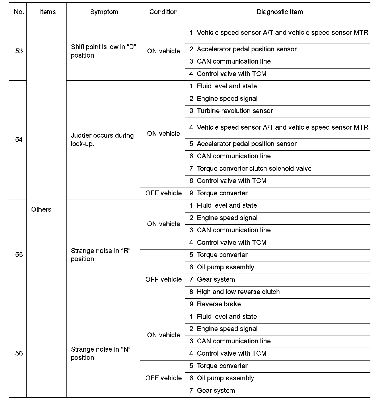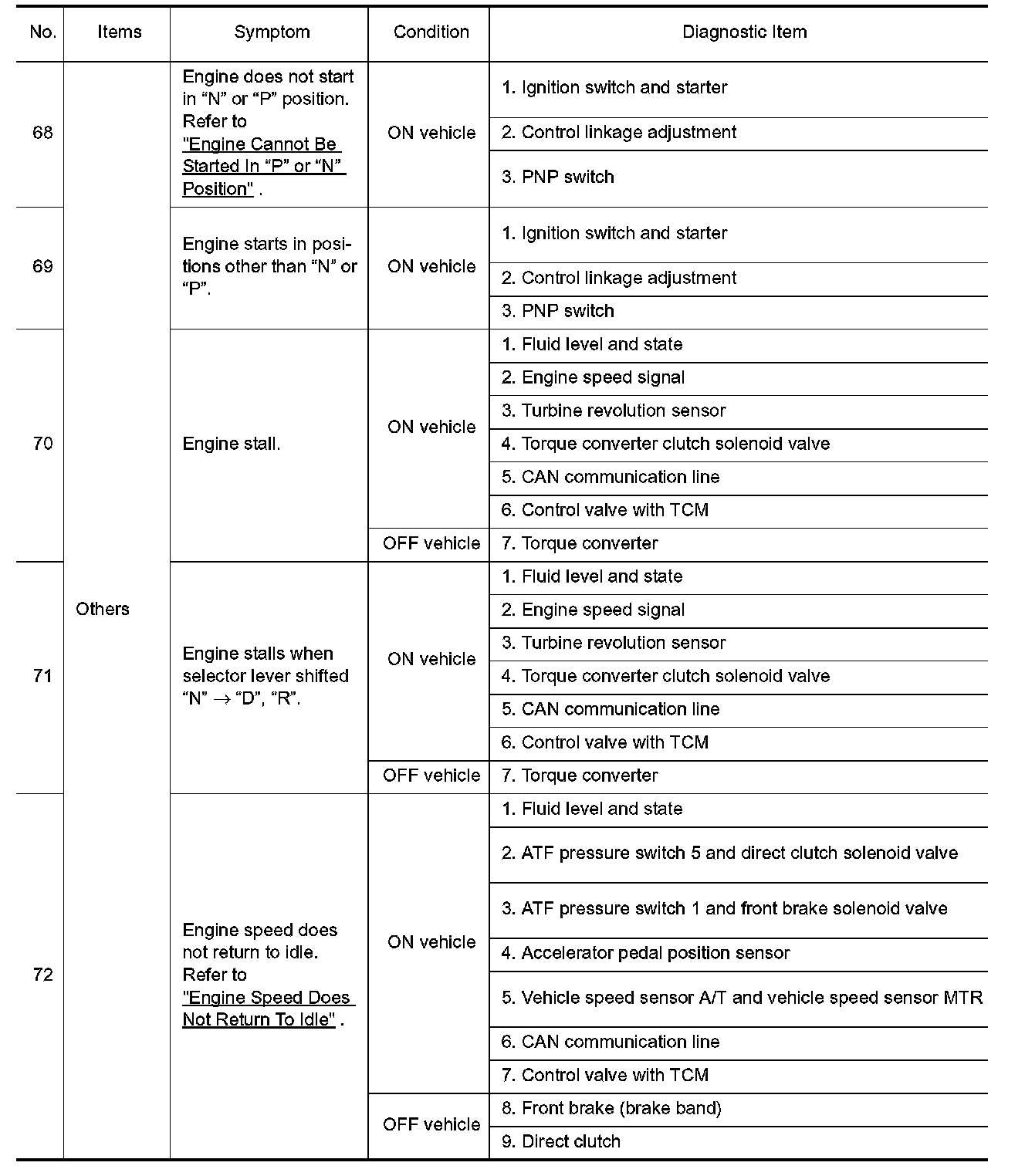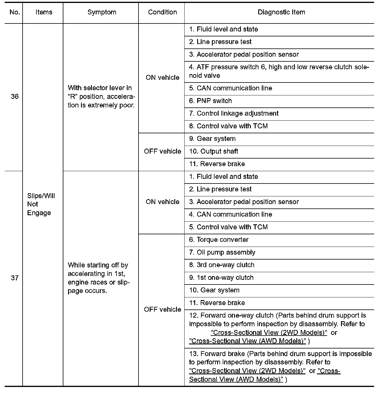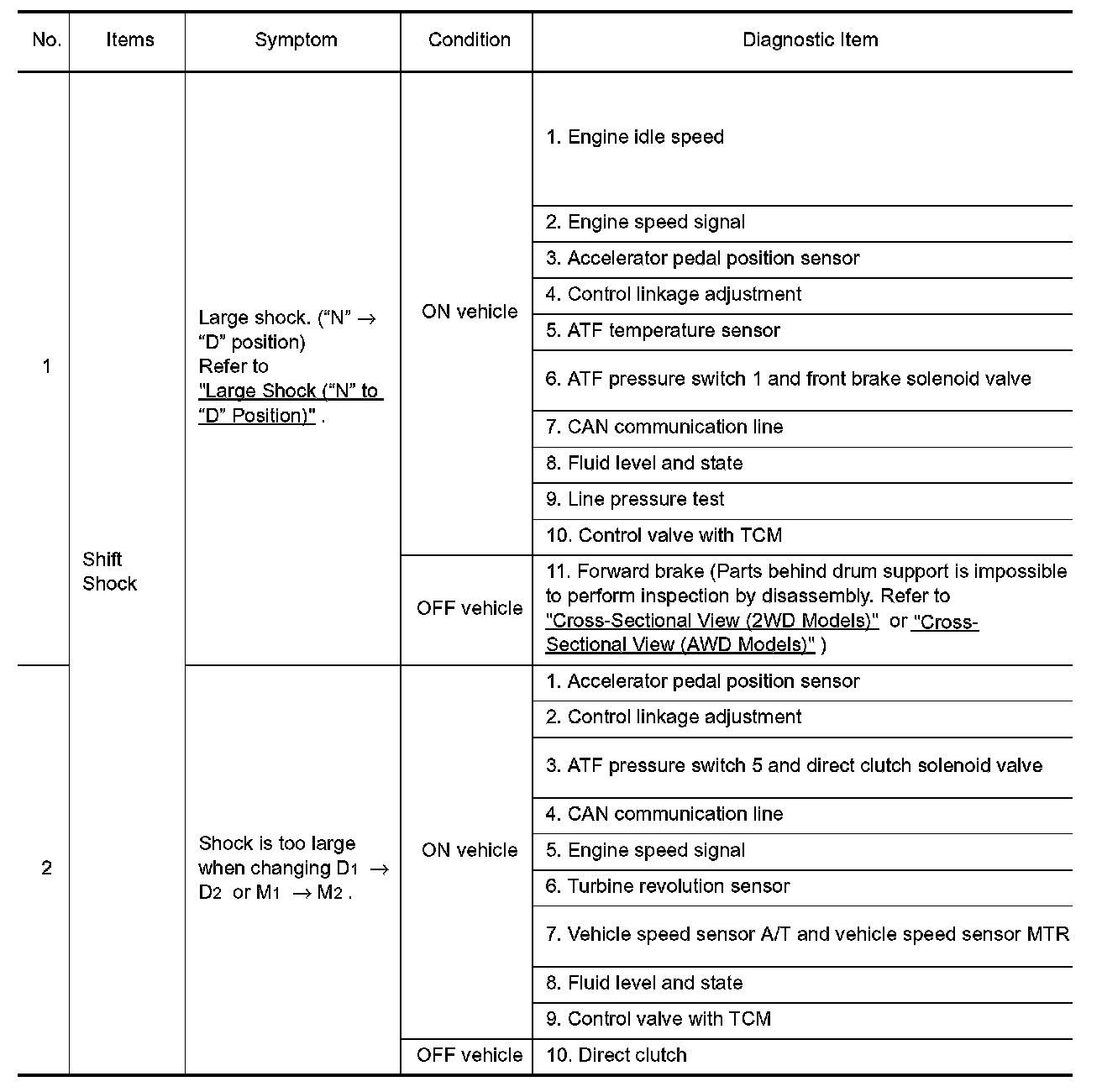 ^ Overhaul and check inside the A/T only if A/T fluid condition is NG. Refer to "Fluid Condition Check".