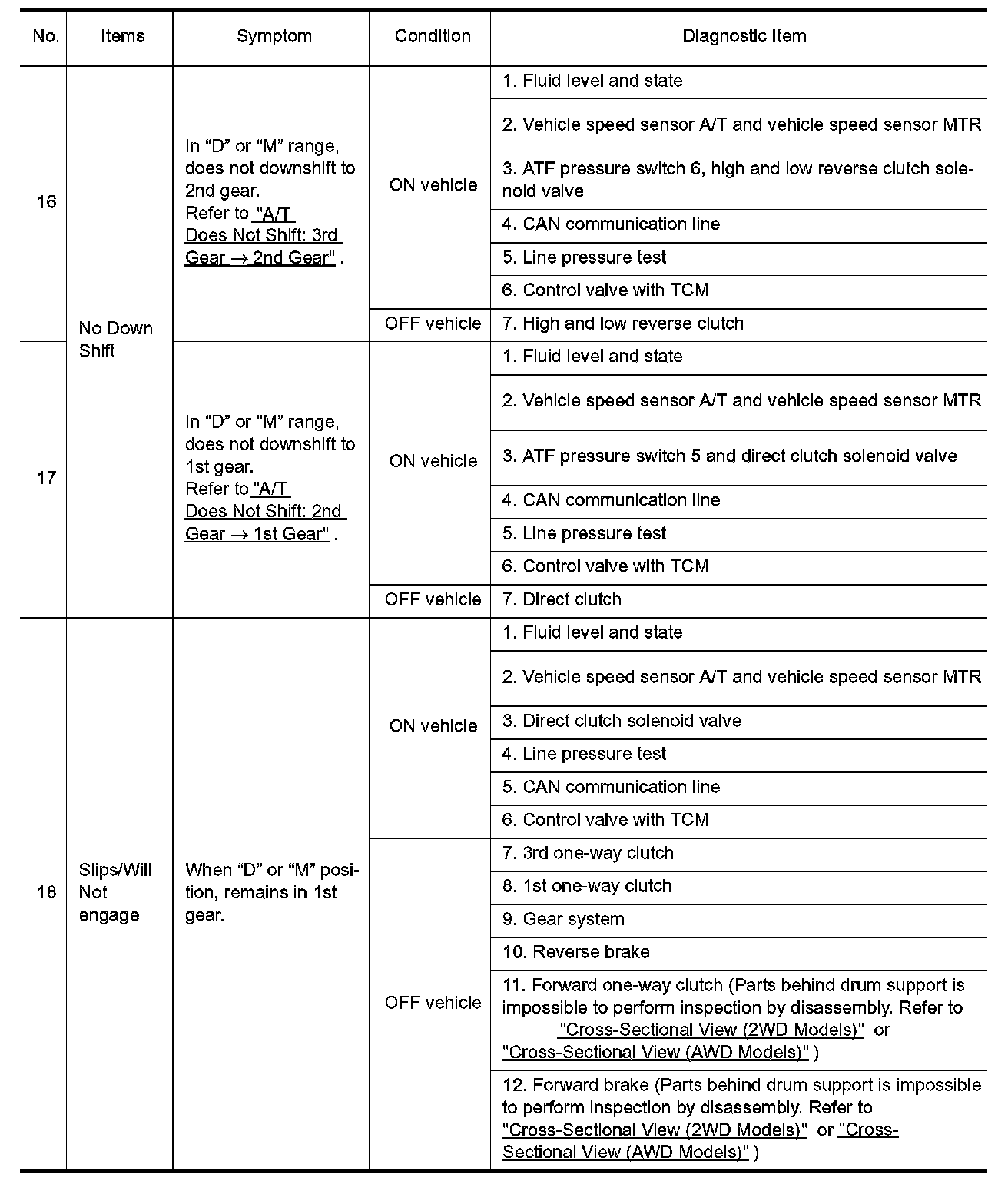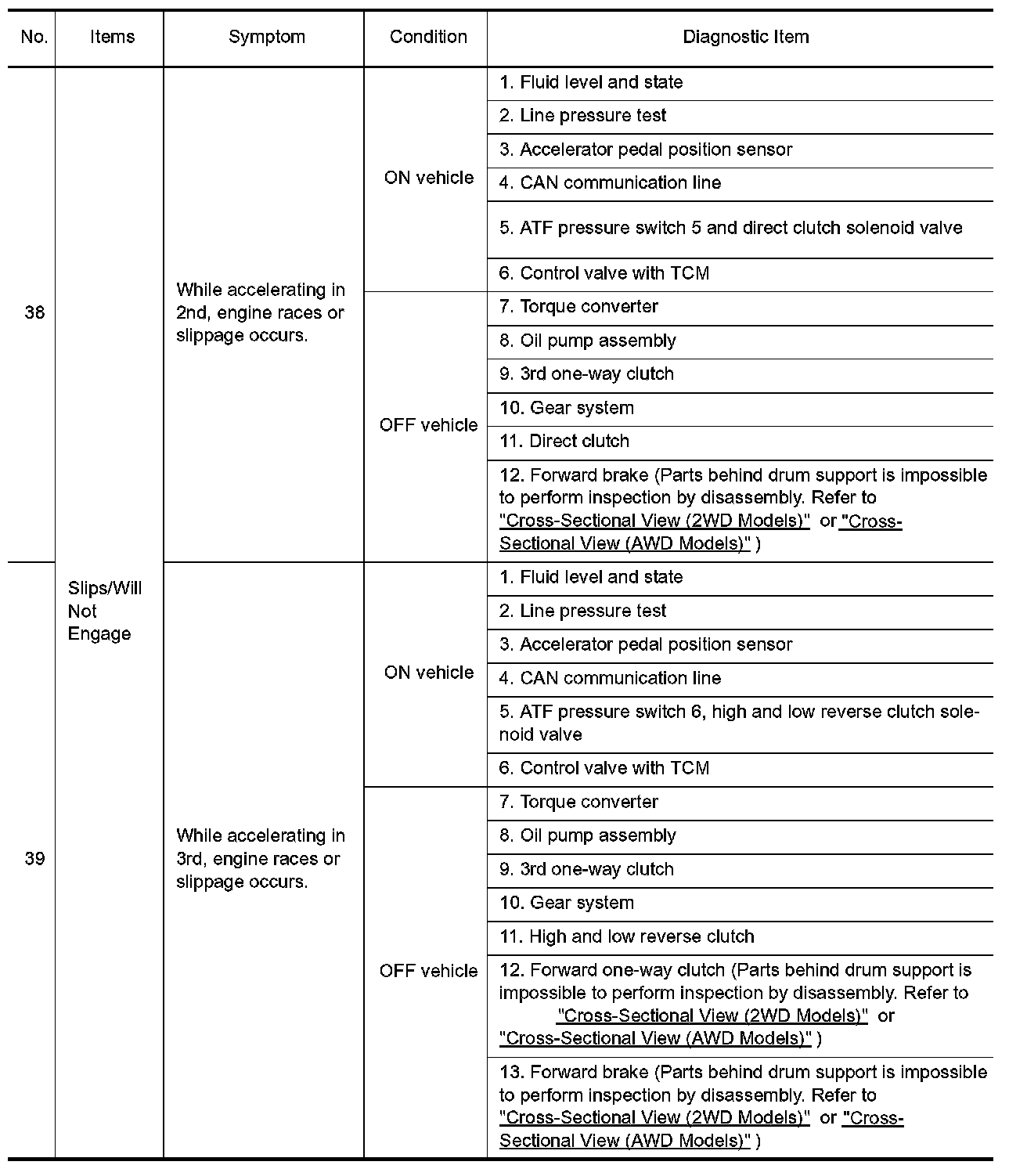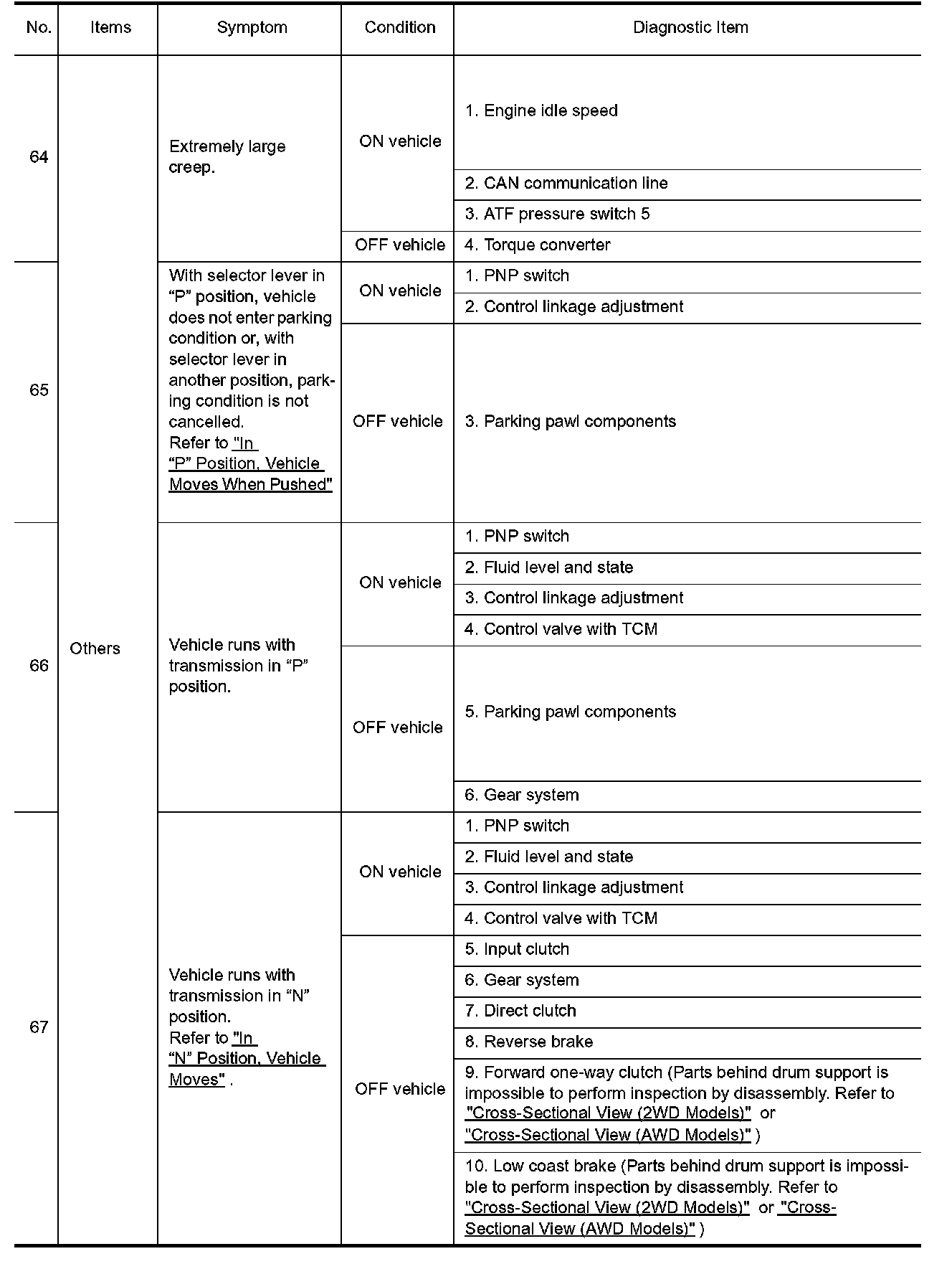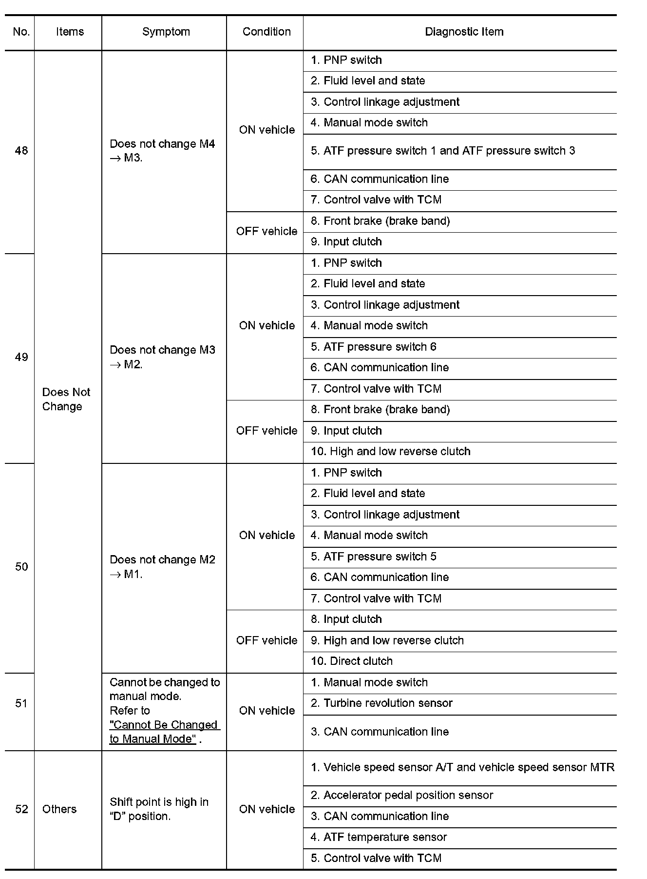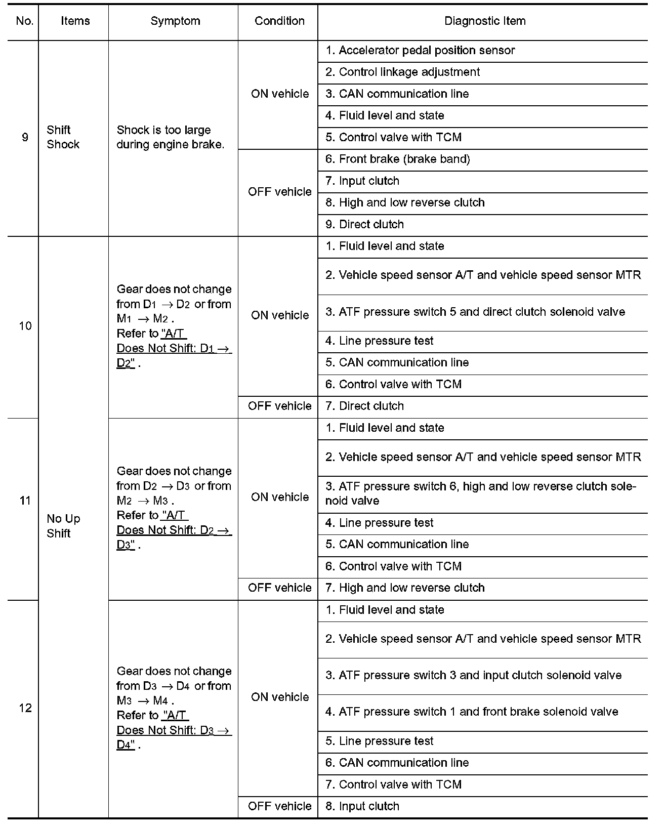 ^ Overhaul and check inside the A/T only if A/T fluid condition is NG. Refer to "Fluid Condition Check".