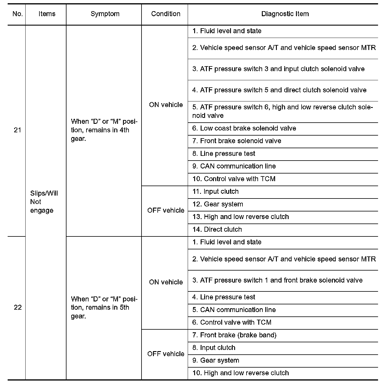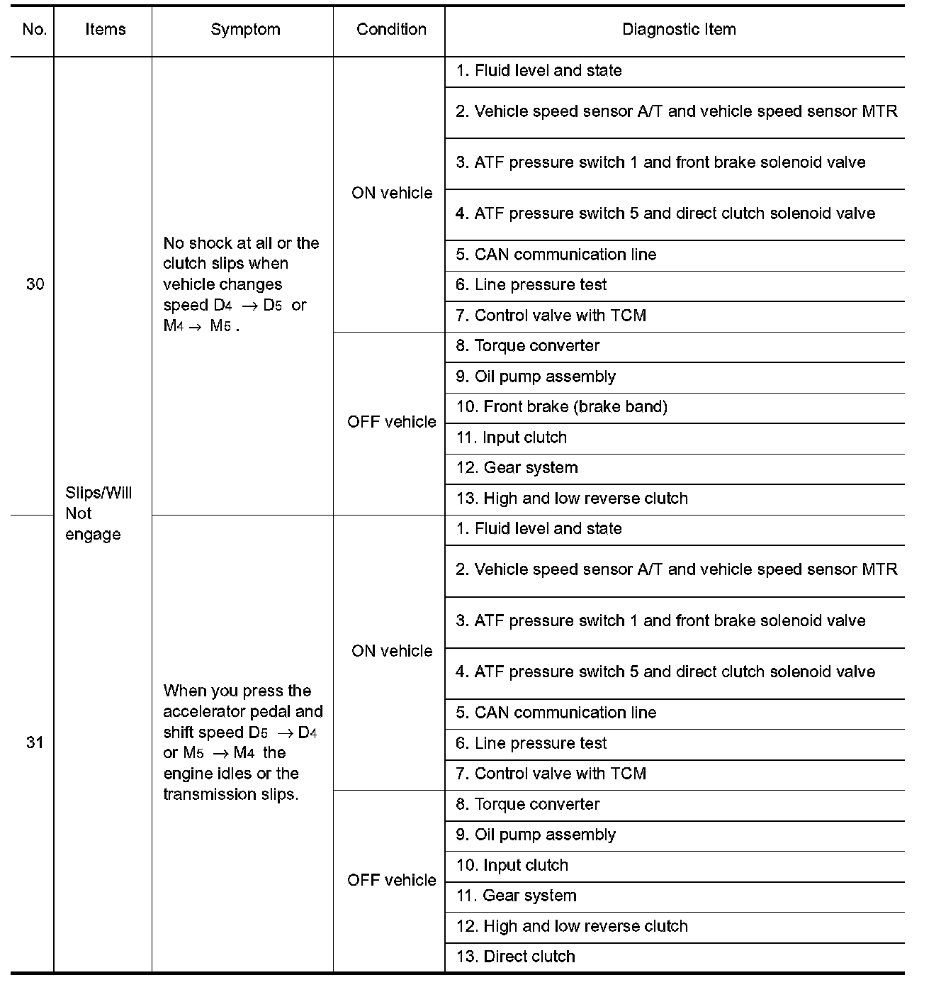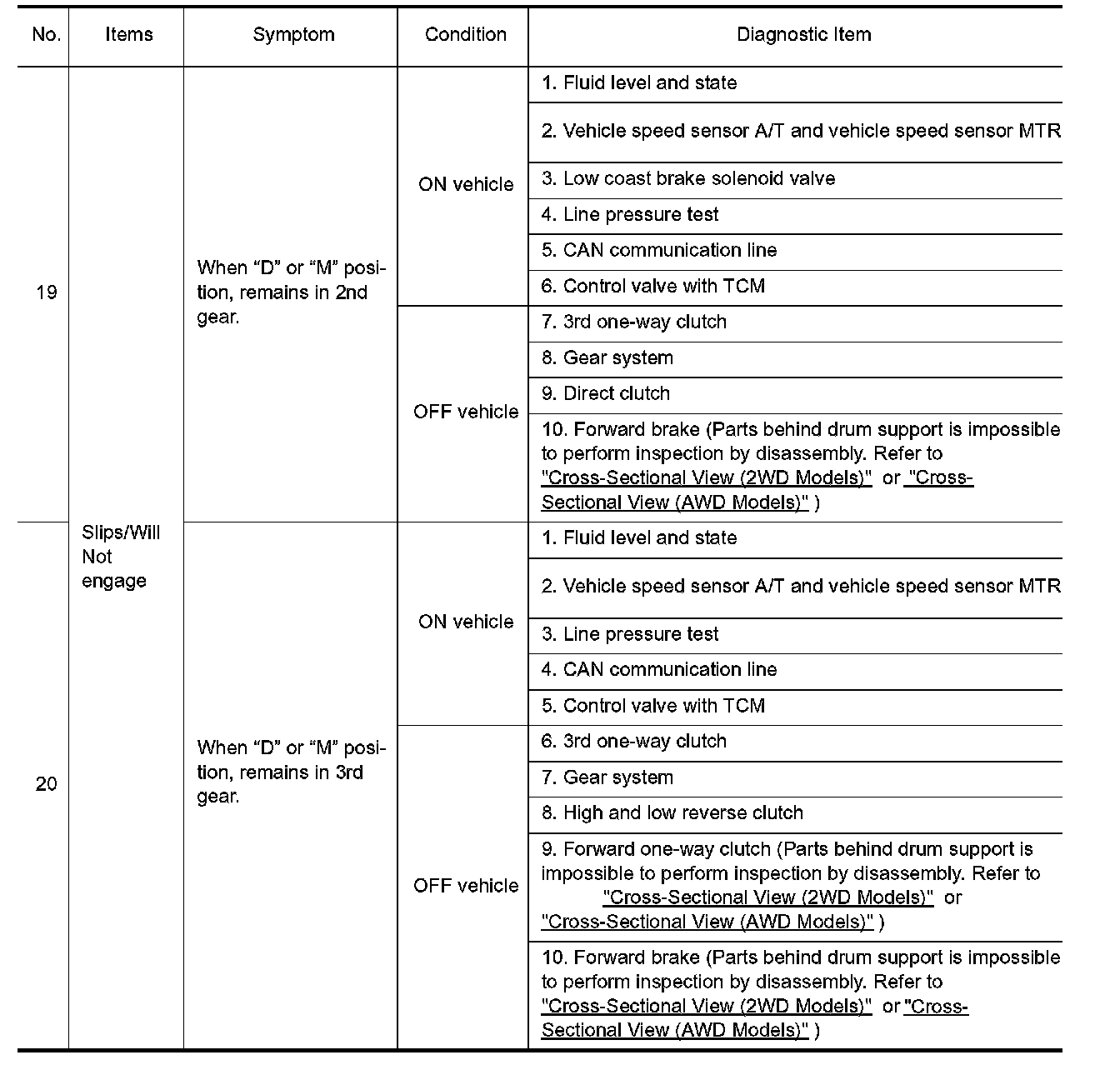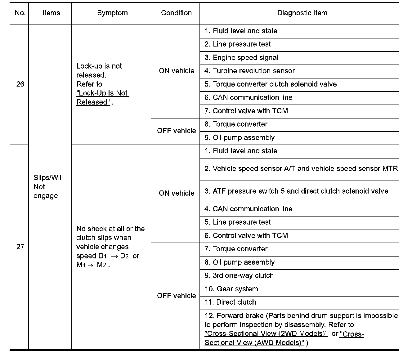 ^ Overhaul and check inside the A/T only if A/T fluid condition is NG. Refer to "Fluid Condition Check".