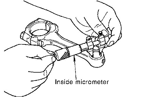 Measure the inner diameter of connecting rod bushing with inside micrometer.