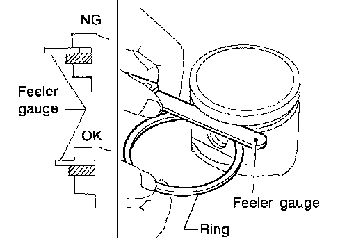 PISTON RING SIDE CLEARANCEMeasure the side clearance of piston ring and piston ring groove with feeler gauge.