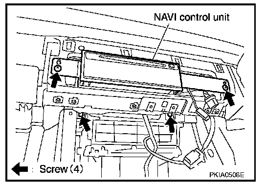 2. Remove screws (4), and remove NAVI control unit.