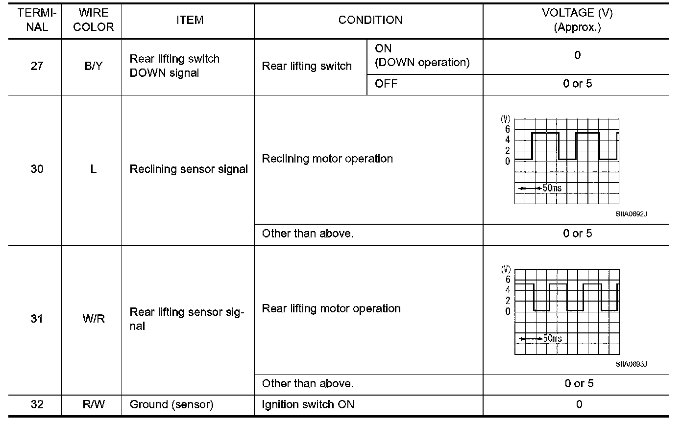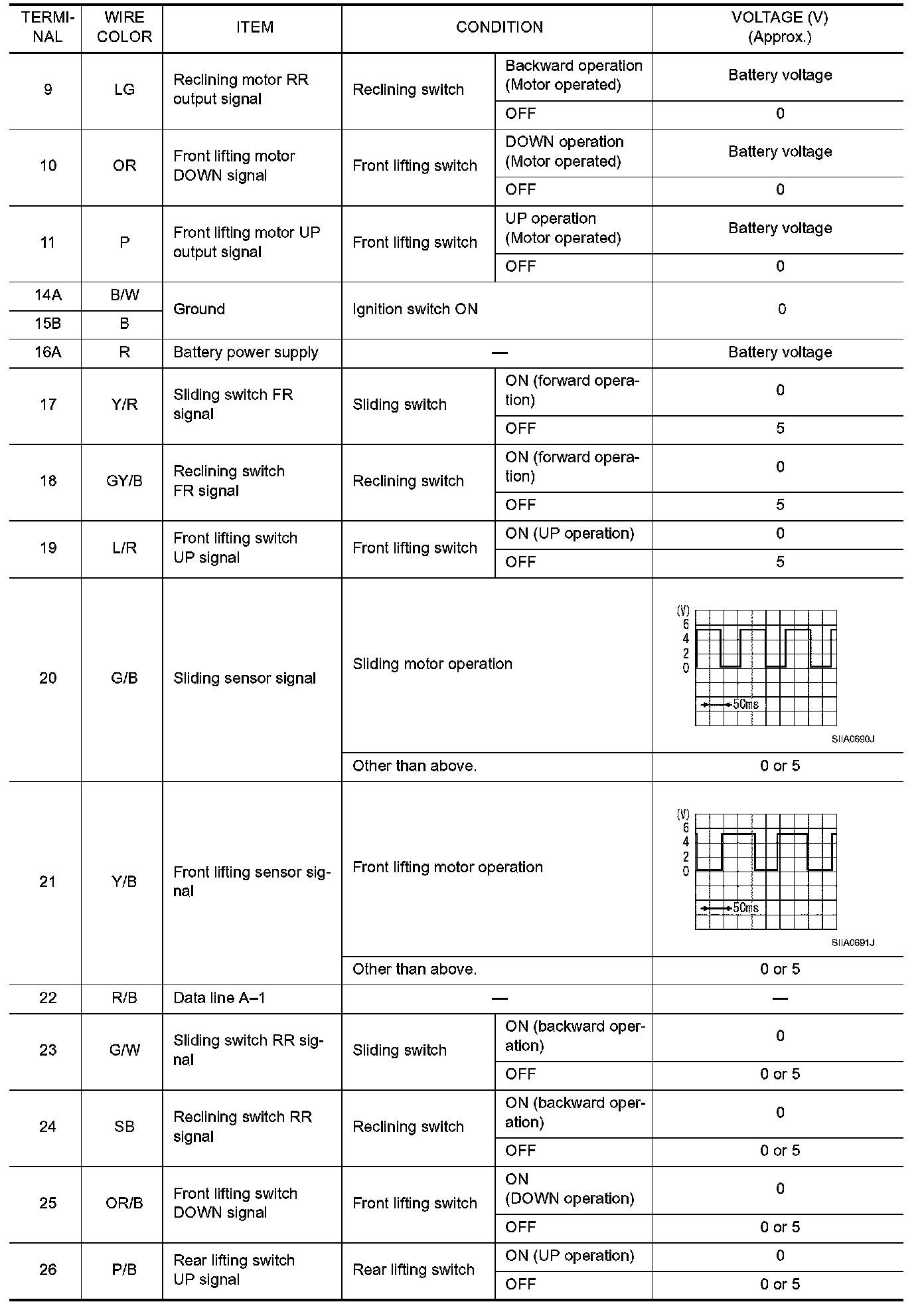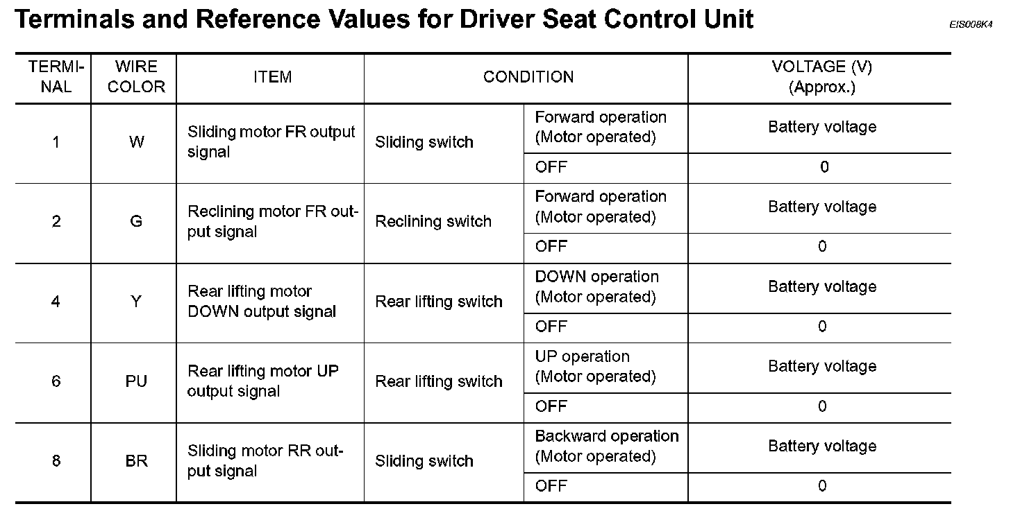 Terminals And Reference Values For Driver Seat Control Unit Part 2: