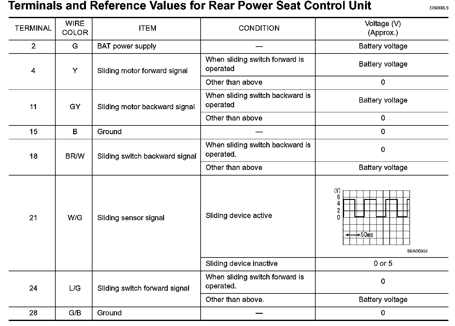 Terminals And Reference Values For Rear Power Seat Control Unit Part 2: