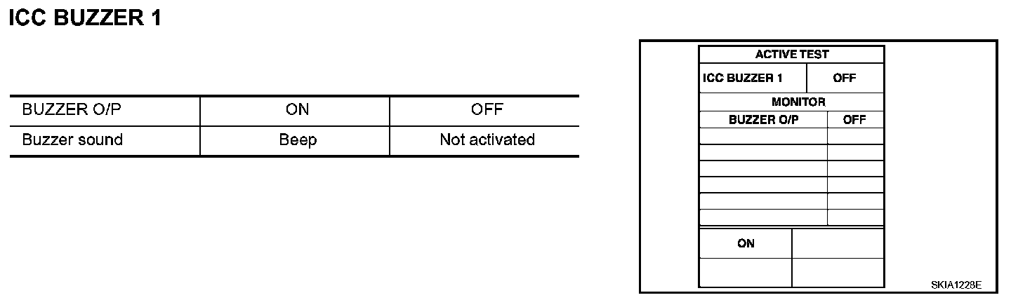 - Touch "ON" and "OFF" to check that ICC warning chime operates as in the given chart.