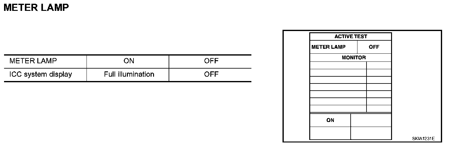 - Touch "ON" and "OFF" to check that ICC system display operates as in the given chart.