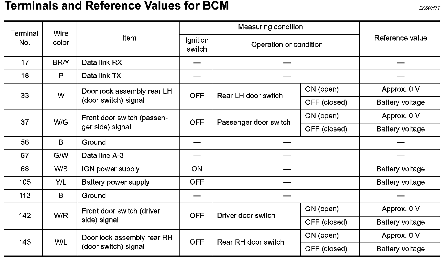 Terminals And Reference Values For BCM: